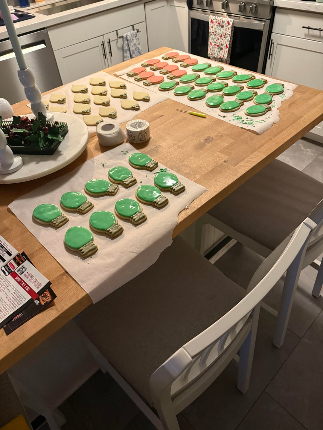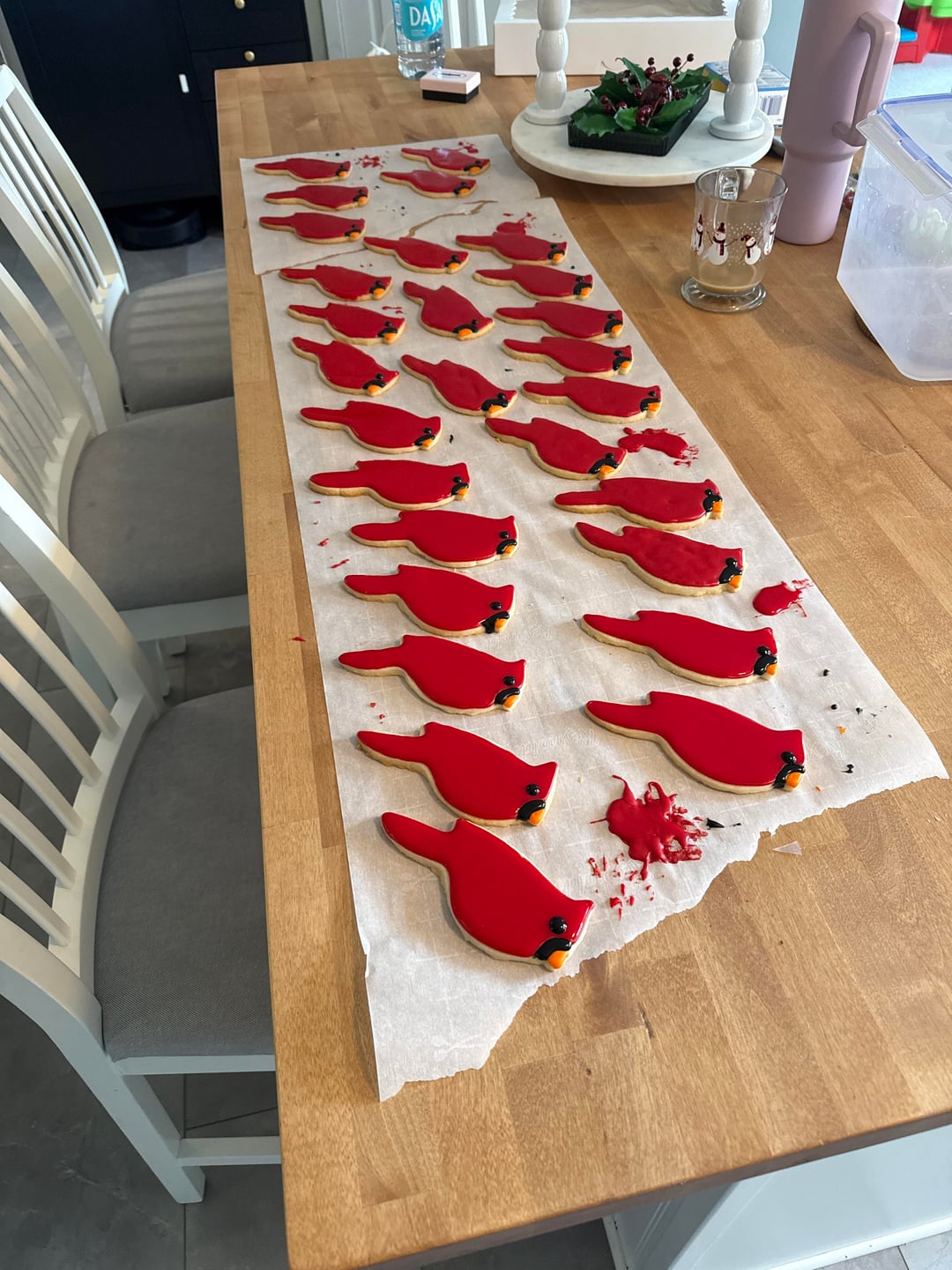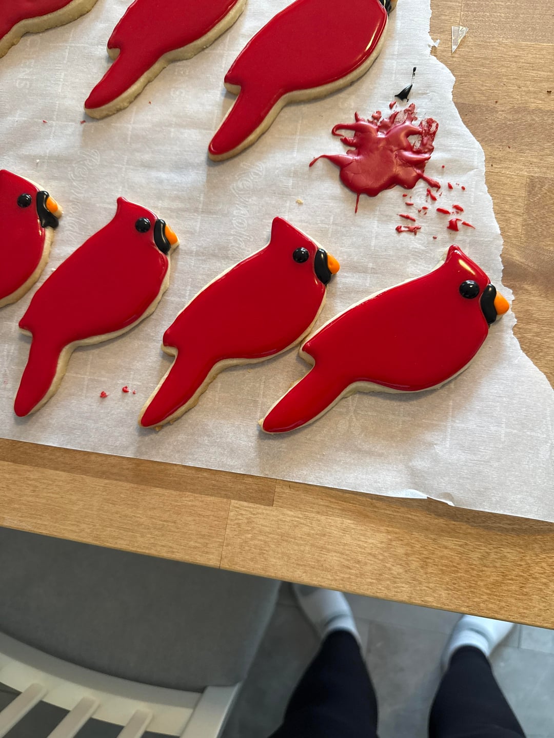 These are in reverse order, so the cardinals were finished yesterday (yes I was behind lol) but I feel like I’ve FINALLY figured out the consistency of royal icing that works for me. I found that was the toughest part. Feeling unstoppable now! I’ve signed myself up to do my best friend’s baby shower cookies in January.