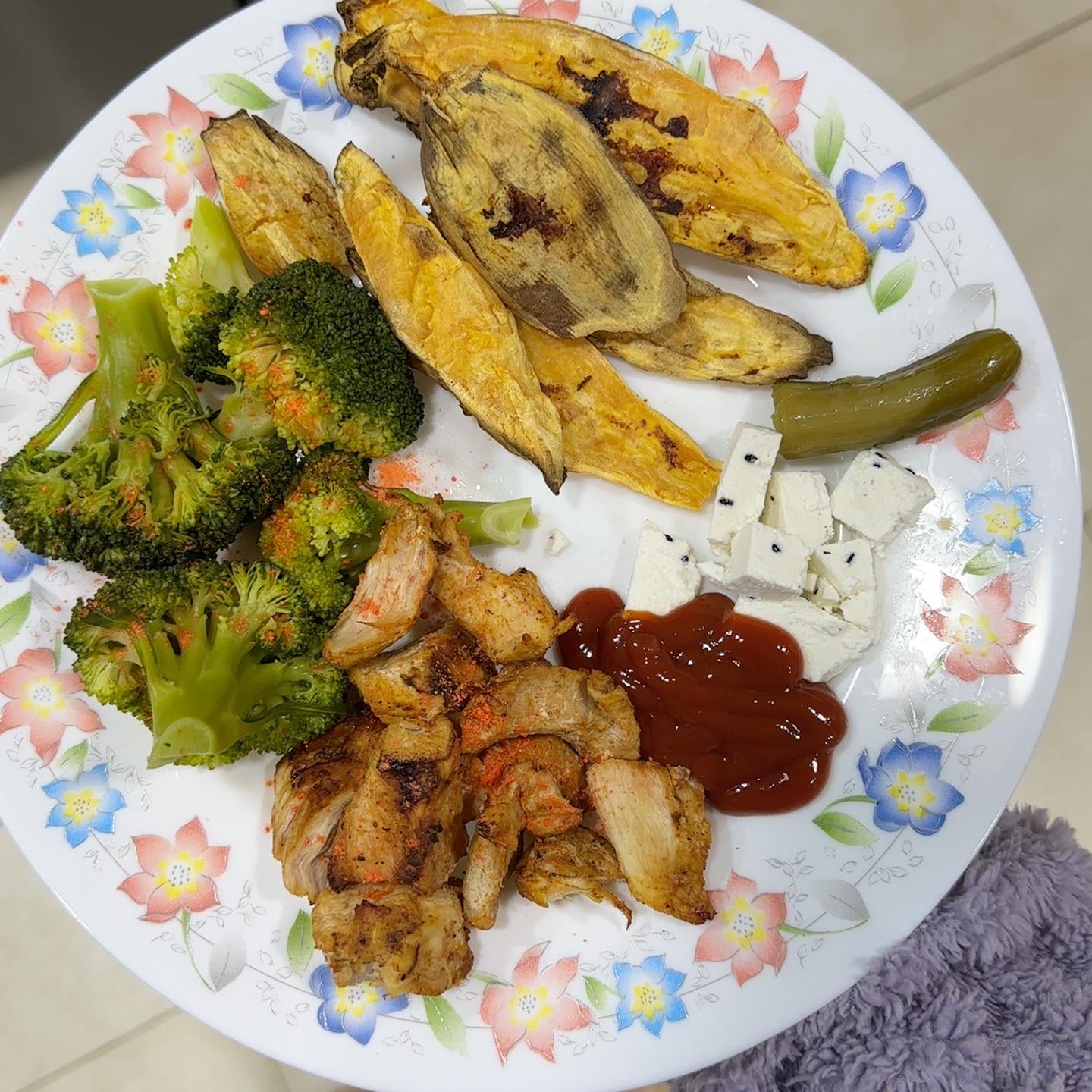 grilled chicken, whey light cheese, pickle, baked sweet potatoes, boiled broccoli, ketchup and cheddar seasoning by hellomarshmallow15 2 Comments vanemiche 2 months ago Do you get all that protein from the chicken? How much chicken is it? agoogua 2 months ago Wow, that looks scrumptions