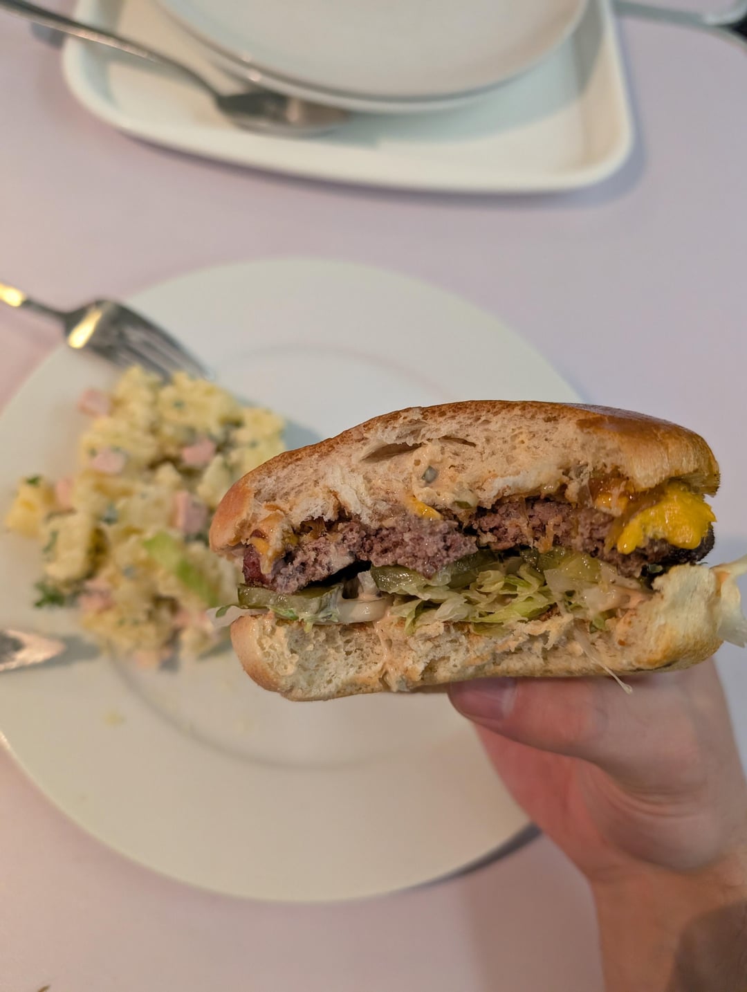 Really hit the spot. Also lettuce, pickles, special sauce, caramelized onions and fresh onionsby ItsPapaLuigi 3 Comments MagazineDelicious151 3 months ago Looks good Western-Flamingo-155 3 months ago Looks noice, what’s in the potato salad? anovelby 3 months ago You took that bite for all of us! Good form