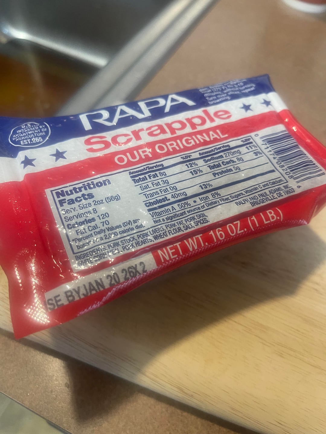 scrapple is so amazing man it was like a treat to us as kids….its so crazy now im an adult and can eat it whenever but forget that i have that option haha