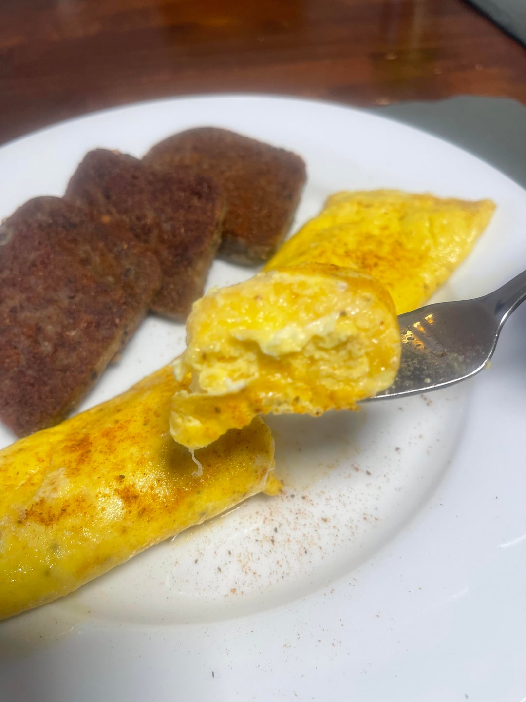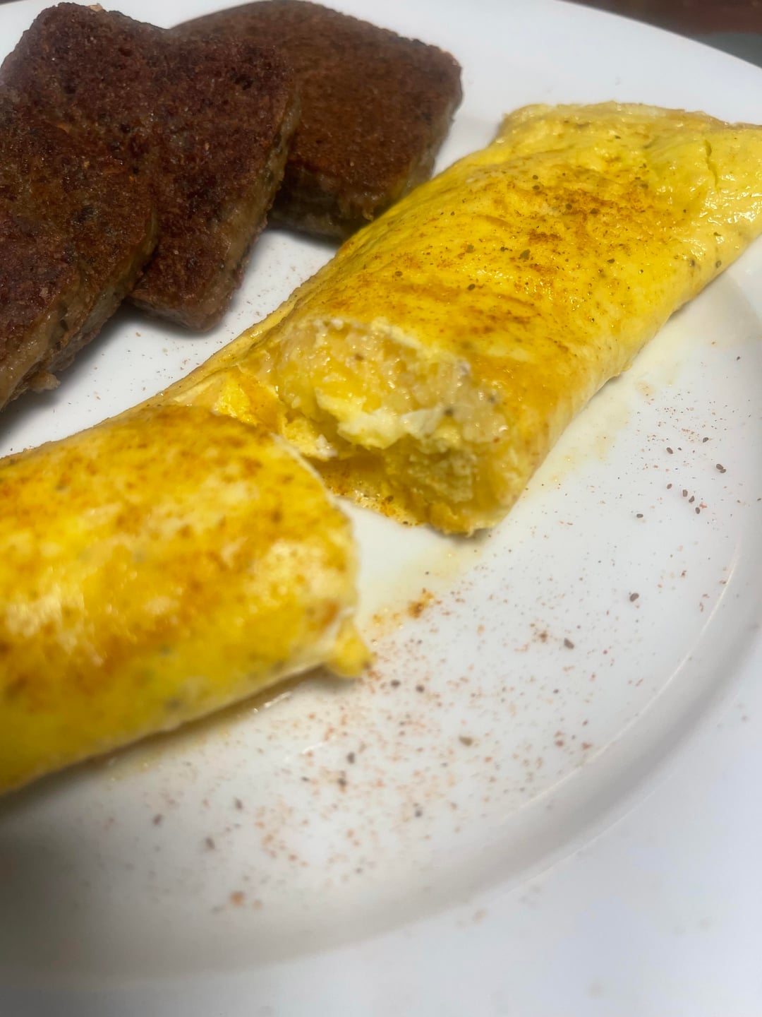Breakfast is MidAtlantic AF. Scrapple & dusted the cheesy eggs with Old Bay lol