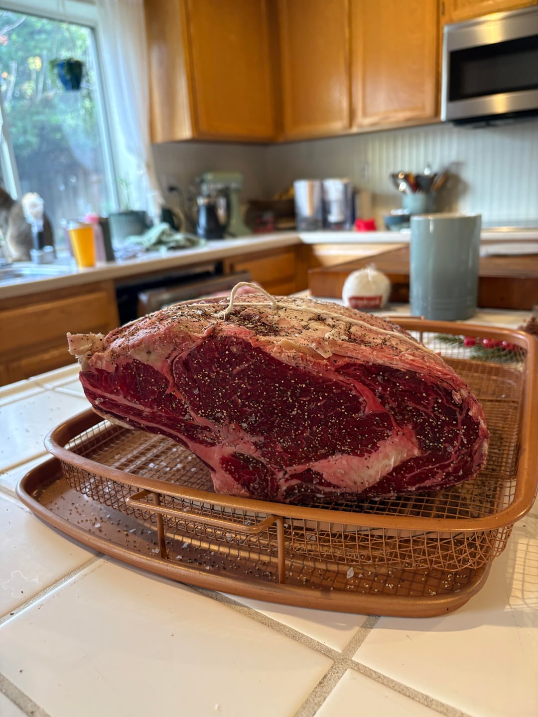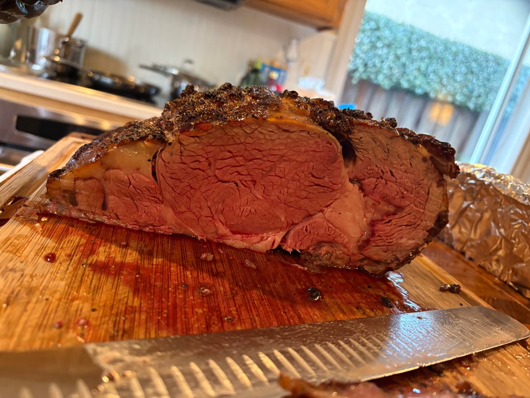 I’ve done some briskets and tri-tips on the smoker but not prime rib prior. Got this cut at Costco. I went back and forth on butter paste method vs pure dry brine. Dry brine won, it also sounded easier.
