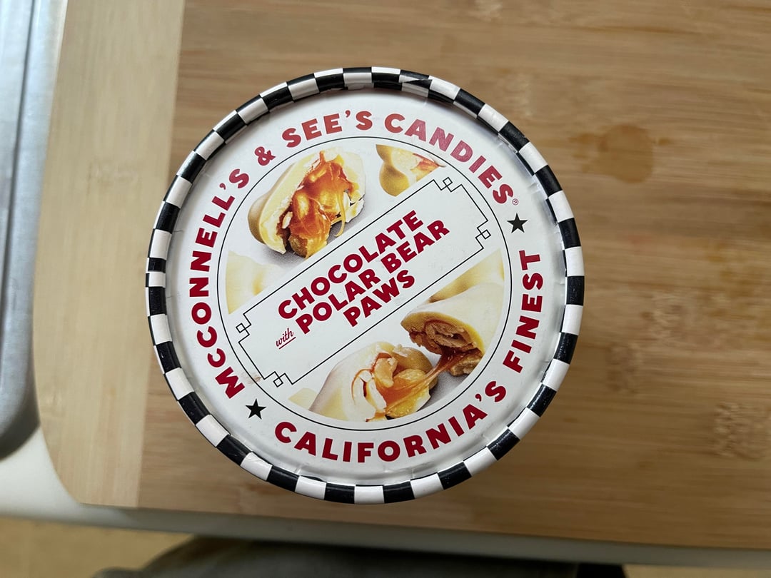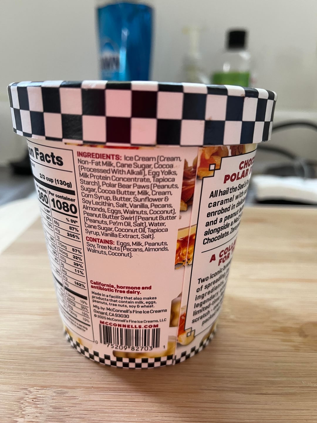 I was disappointed in this. I wish it was vanilla ice cream and I wish there was more caramel/peanuts/ chunks of polar bear paws