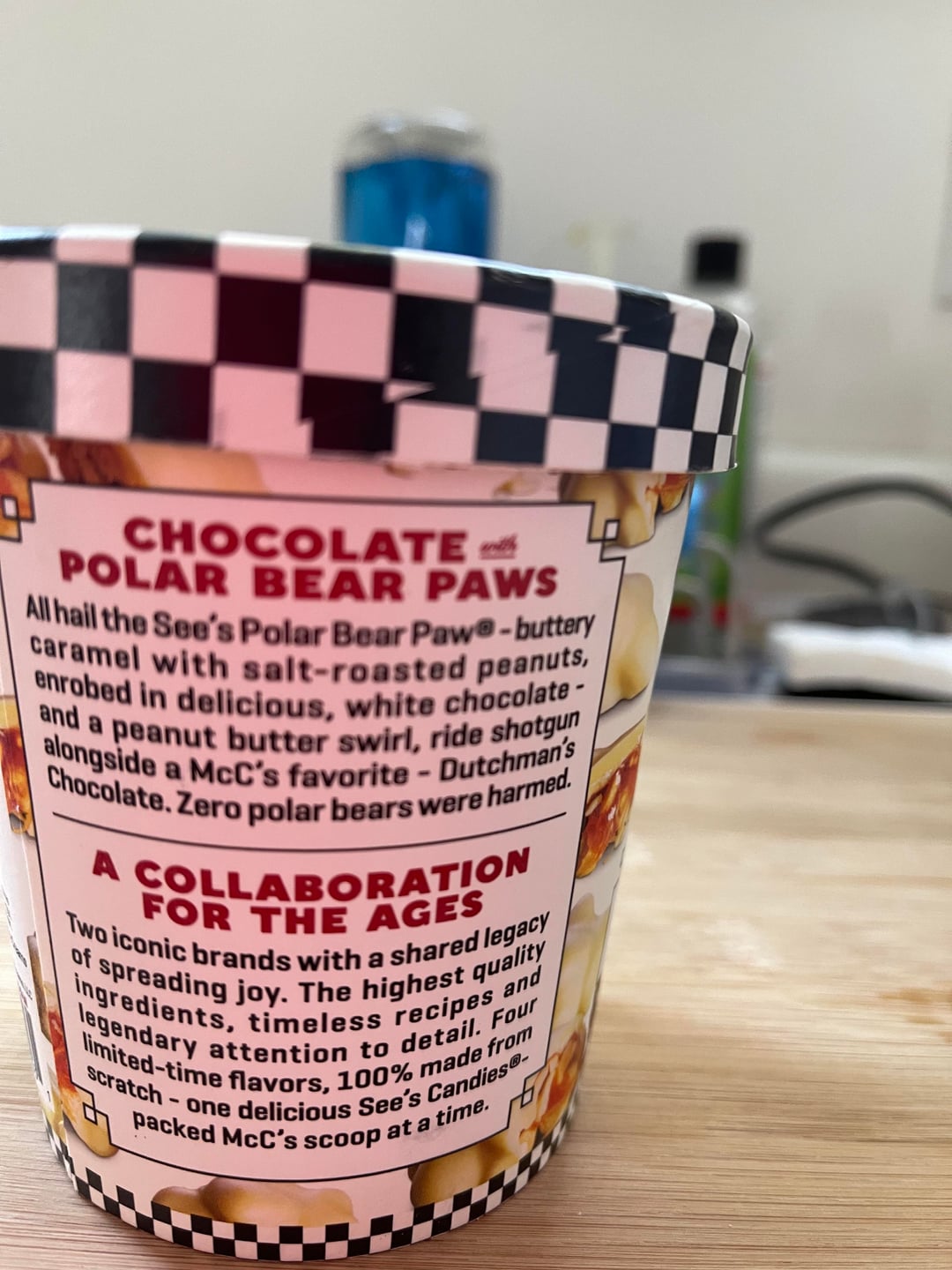 I just had this and it was just okay. It really needed more filling. I added some peanuts and whipped cream I had on hand which helped me finish it. It could have been really good if it had more than what I equate to be maybe 1 polar bear paw in the entire pint.