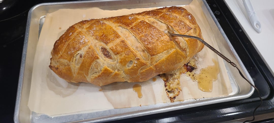 All I edited in the wellington recipe was removing the foie gras (me and my guests refuse to eat it), replaced the soy sauce with msg (since the prosciutto has plenty of salt), and I used a double layer of phyllo. The bottom was crispy, the inside was luxurious and perfectly cooked, and the mustard and prosciutto worked perfectly!! The only issue was that I had to throw it back in the oven for an extra 15 min (2.1 lb tenderloin) to get it to 120 degrees F. Green peppercorn sauce was rhe perfect accompaniment.