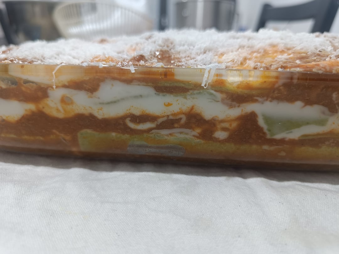 But it's made the same way and is frozen in individual portions in the freezer. For the lasagna, I thawed about four portions of 100-150g each, plus a couple of portions of tomato sauce. Since everything was very compact (I reduce both the ragù and the sauce more than usual to freeze a larger quantity in a smaller space), I also added hot water.