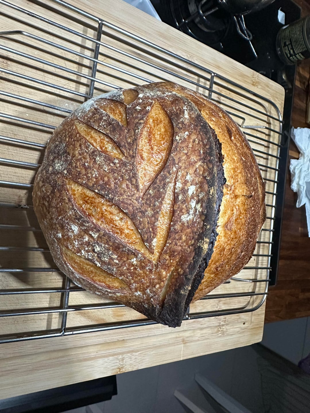 I took my sweet time and had patience and about 6 failed loaves (well, not failed as in not edible, but you understand my point) I kept trying my starter (created on 29th of November) and a 80% hydration recipe.