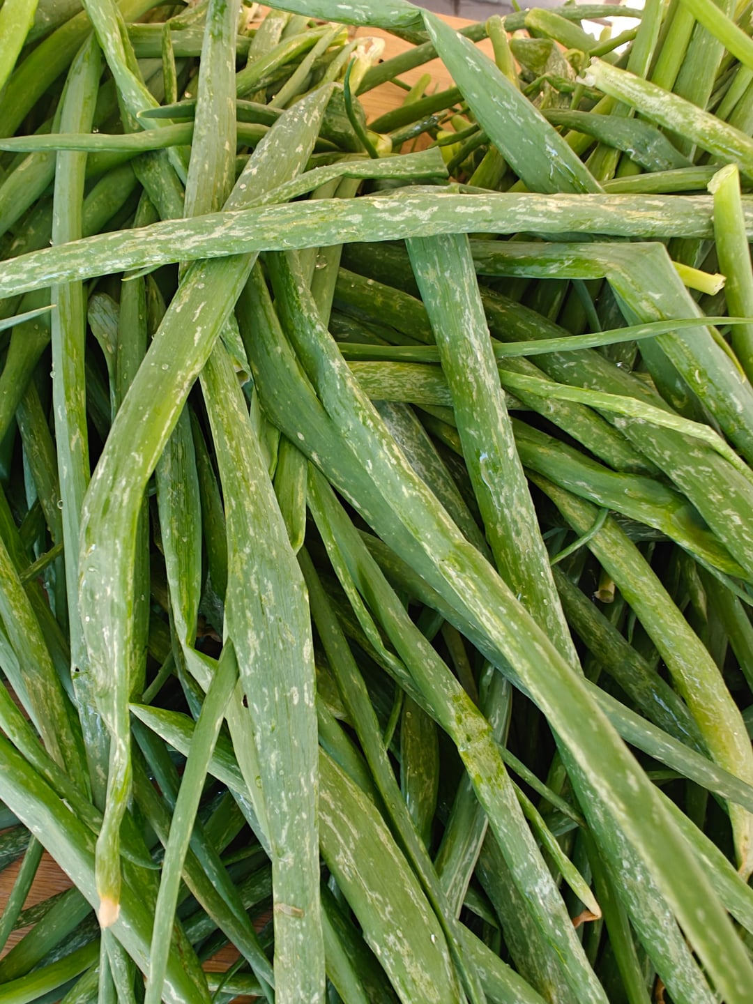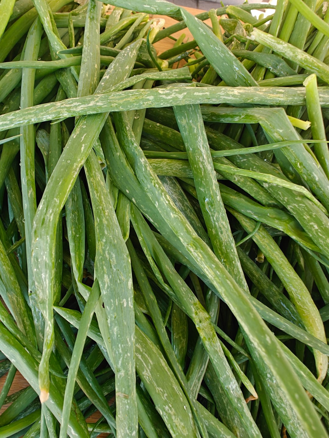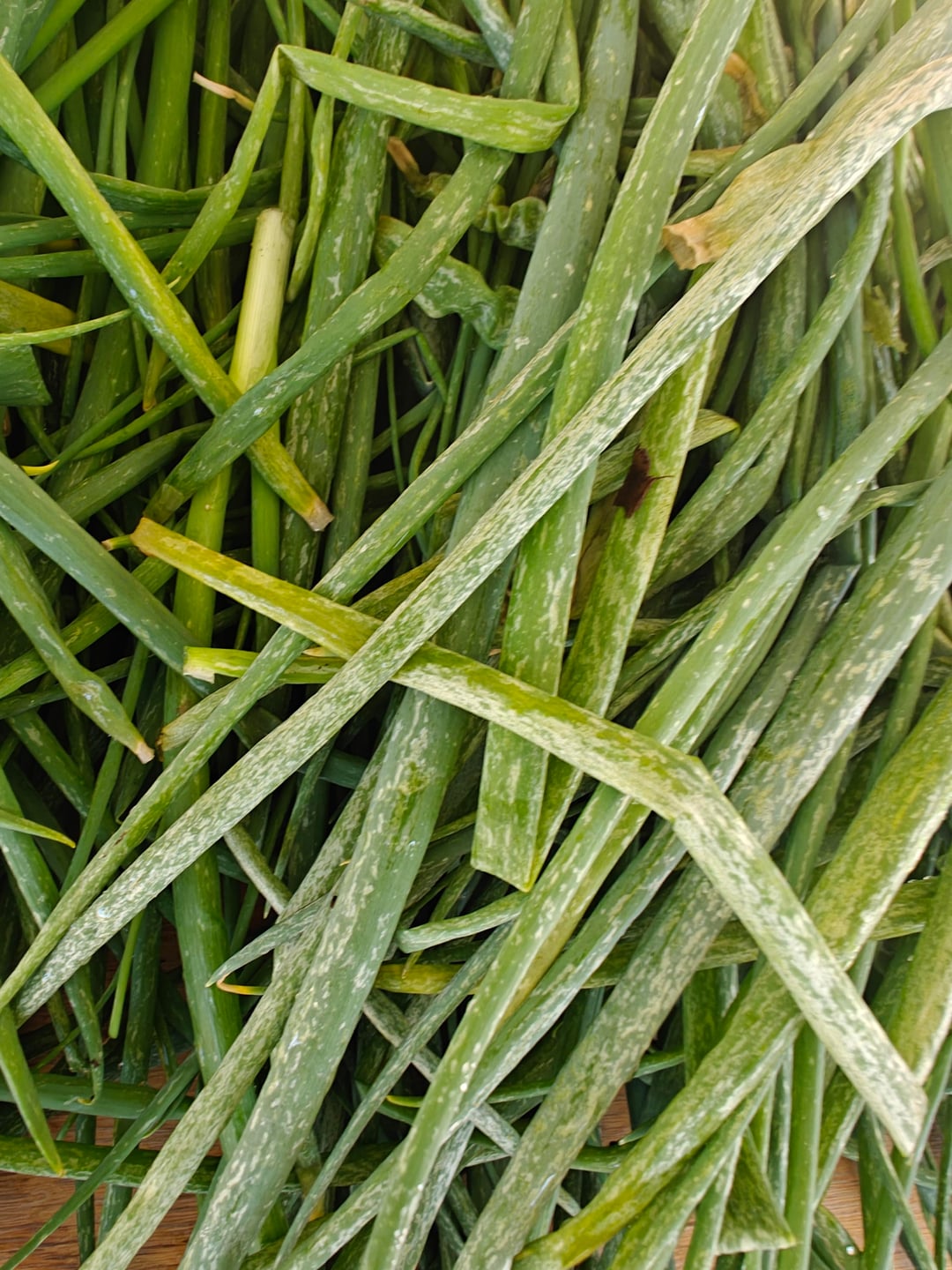 I've cut it back aggressively and it keeps coming back like this. I've removed several smaller scallions to improve spacing this time around. Not sure if this is moldy or diseased.