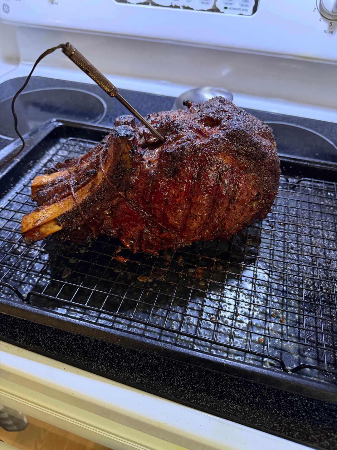 Did better than me, similar prep I cooked mine at 225 until the probe hit 130. Let it rest cut into it a perfect rare juicy and amazing. The wife wanted medium she put it in the oven and I pulled it the instant the probe hit 140 but it was too late the chain reaction was already triggered. It hit 160 before I carved it 😭