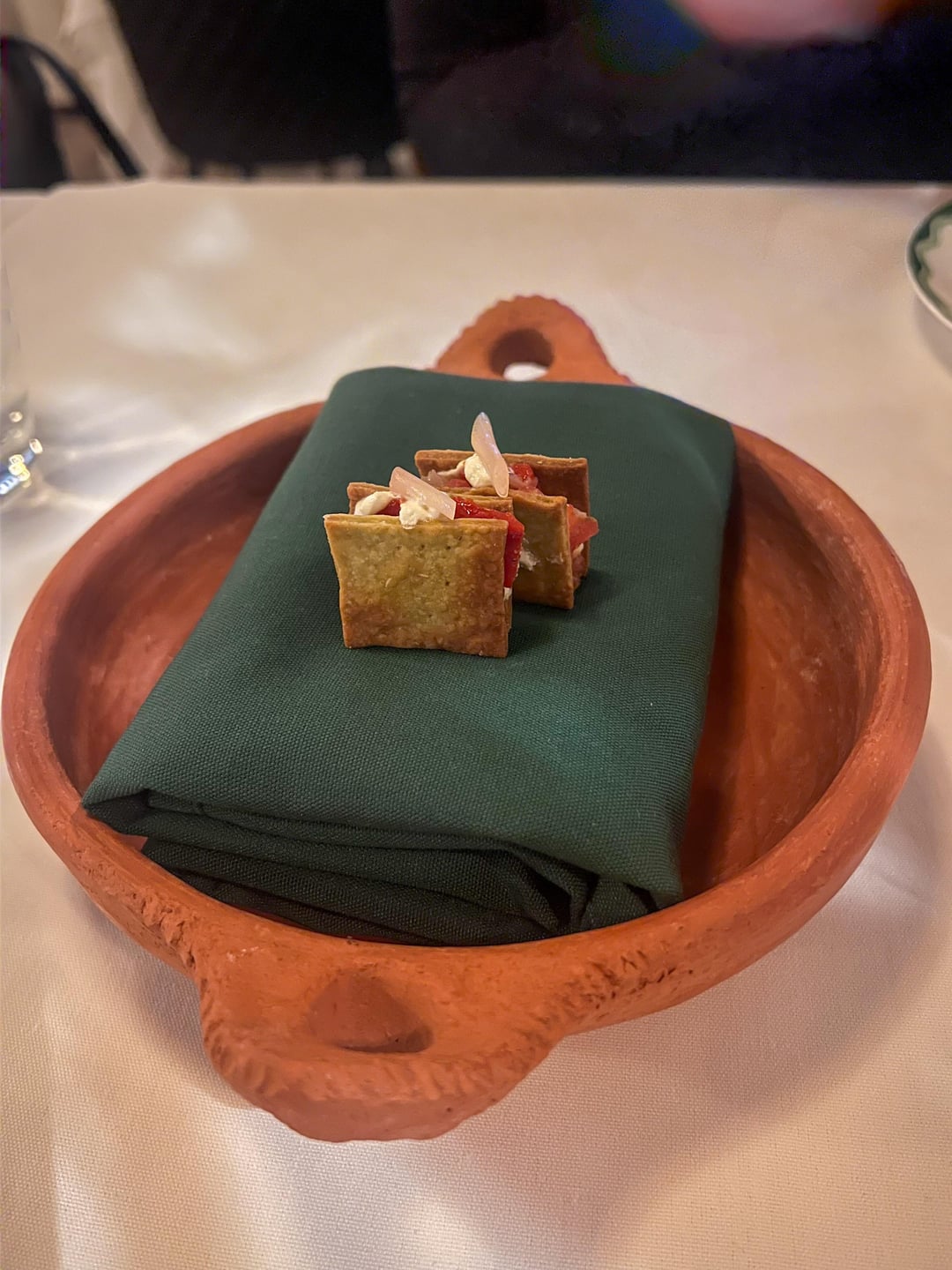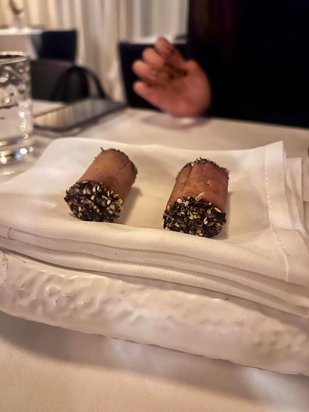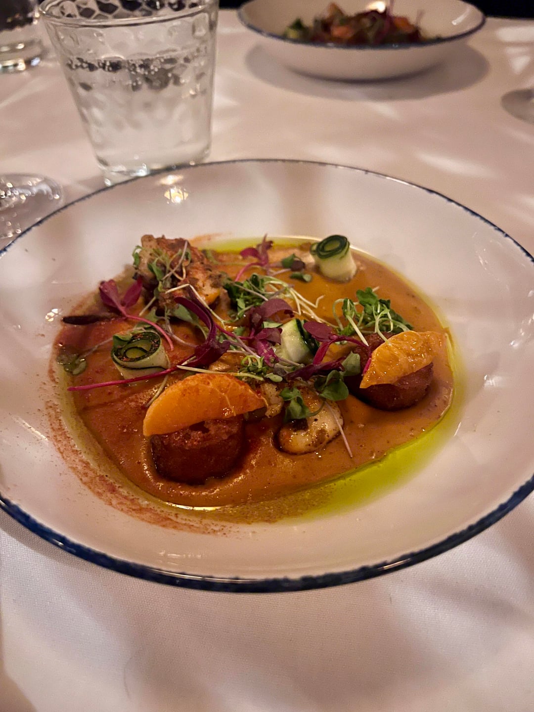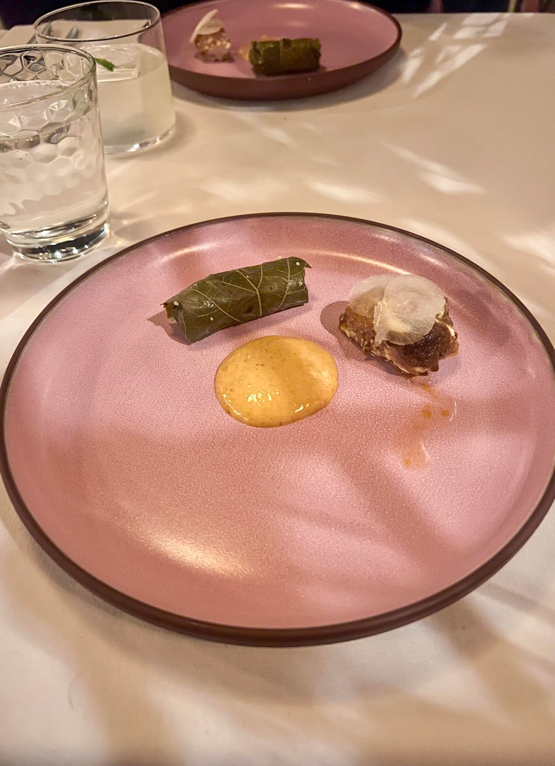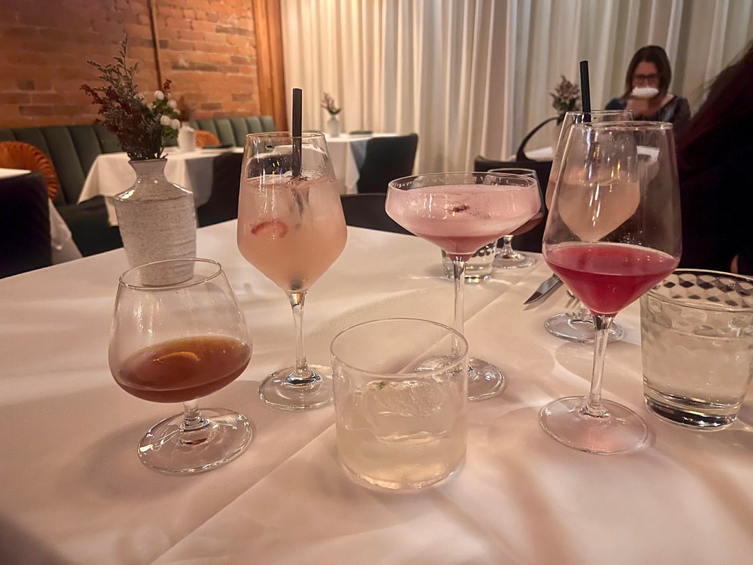 Blind 11-course tasting menu (Mediterranean flavors) paired with cocktails by 2024 MICHELIN Guide Toronto Exceptional Cocktails Award Winner Shayne Herbert.