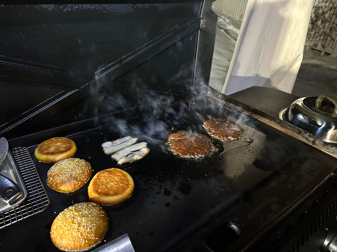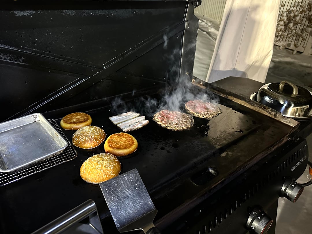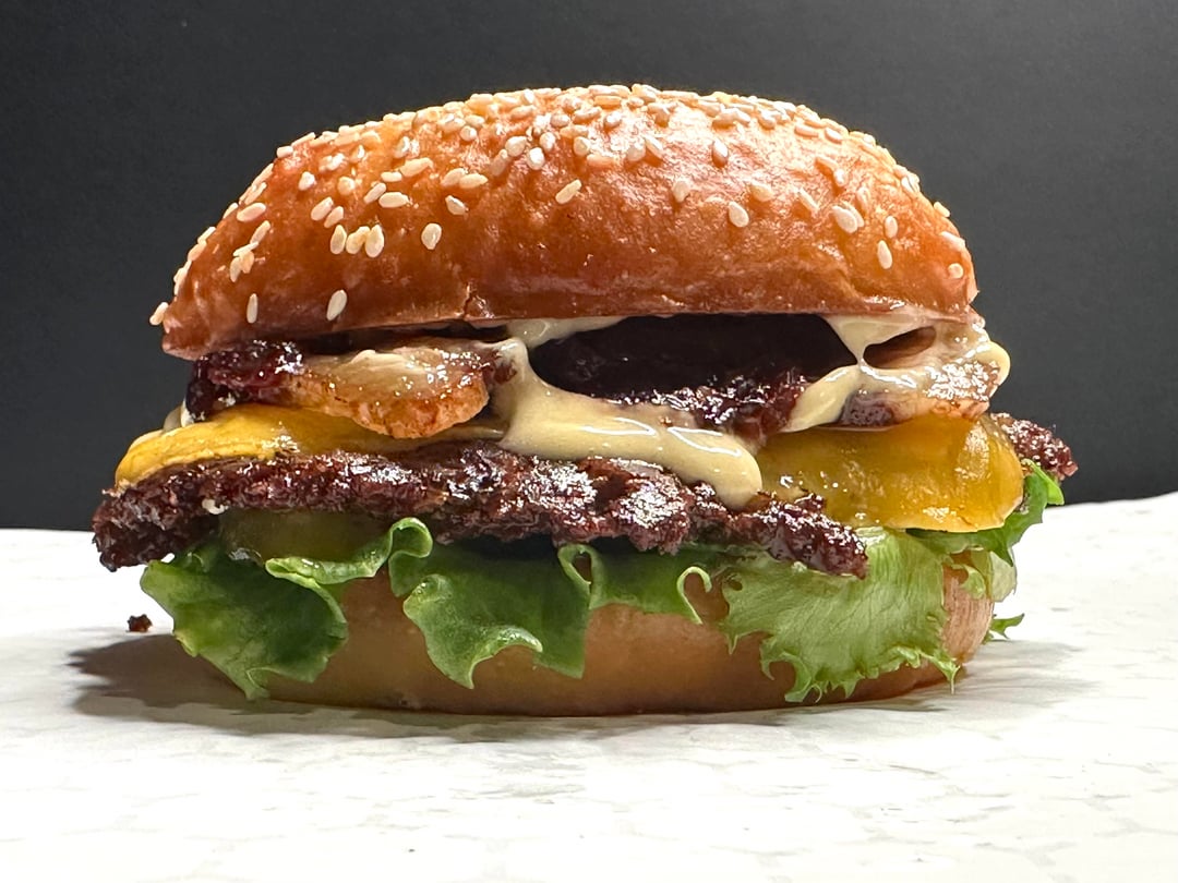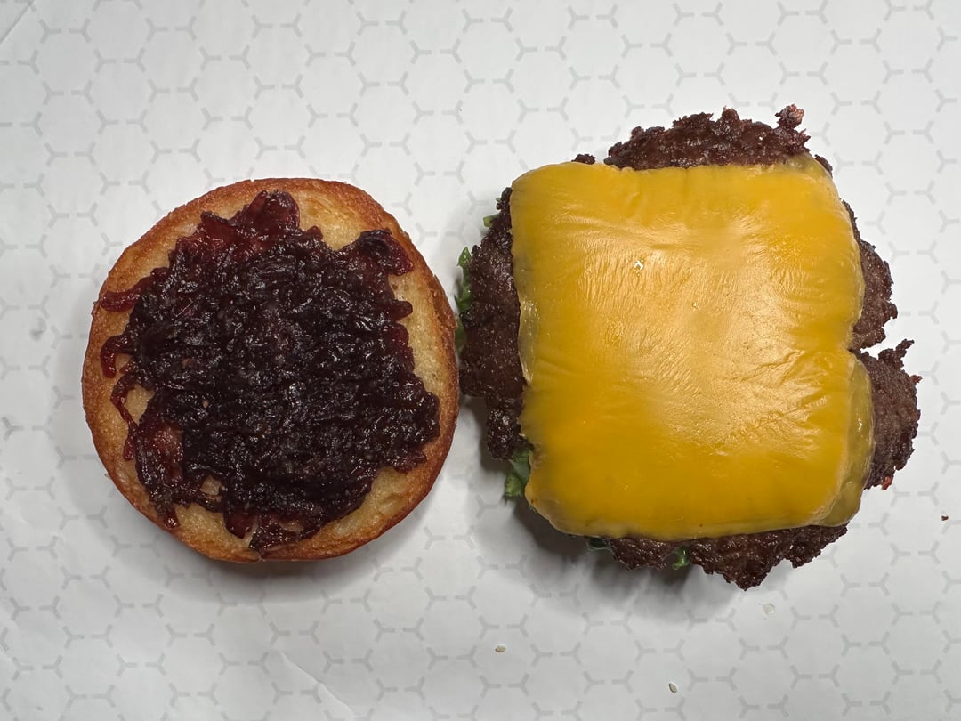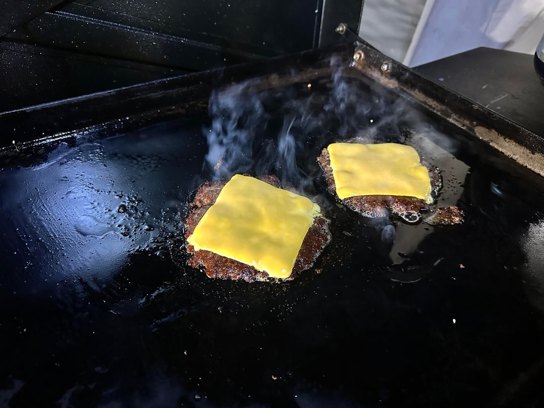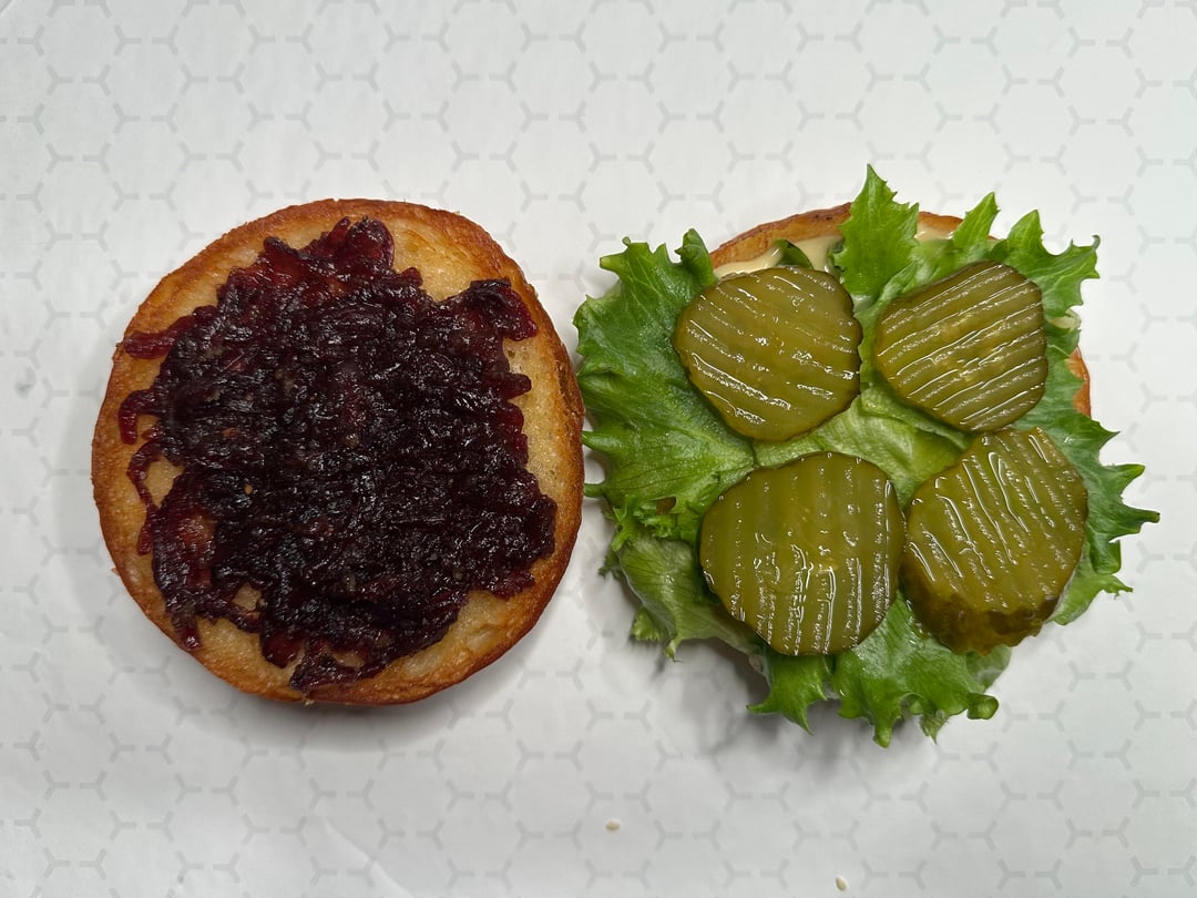 Burger night! This week’s special had Home ground chuck smash patties, American cheese, a quick sweet and spicy red onion jam (red onions cooked with my maple jalapeño sauce), lettuce, pickles, pork belly, and my maple Mustard lime sauce. My wife’s had lettuce, tomato, pickles, and the same sauce.