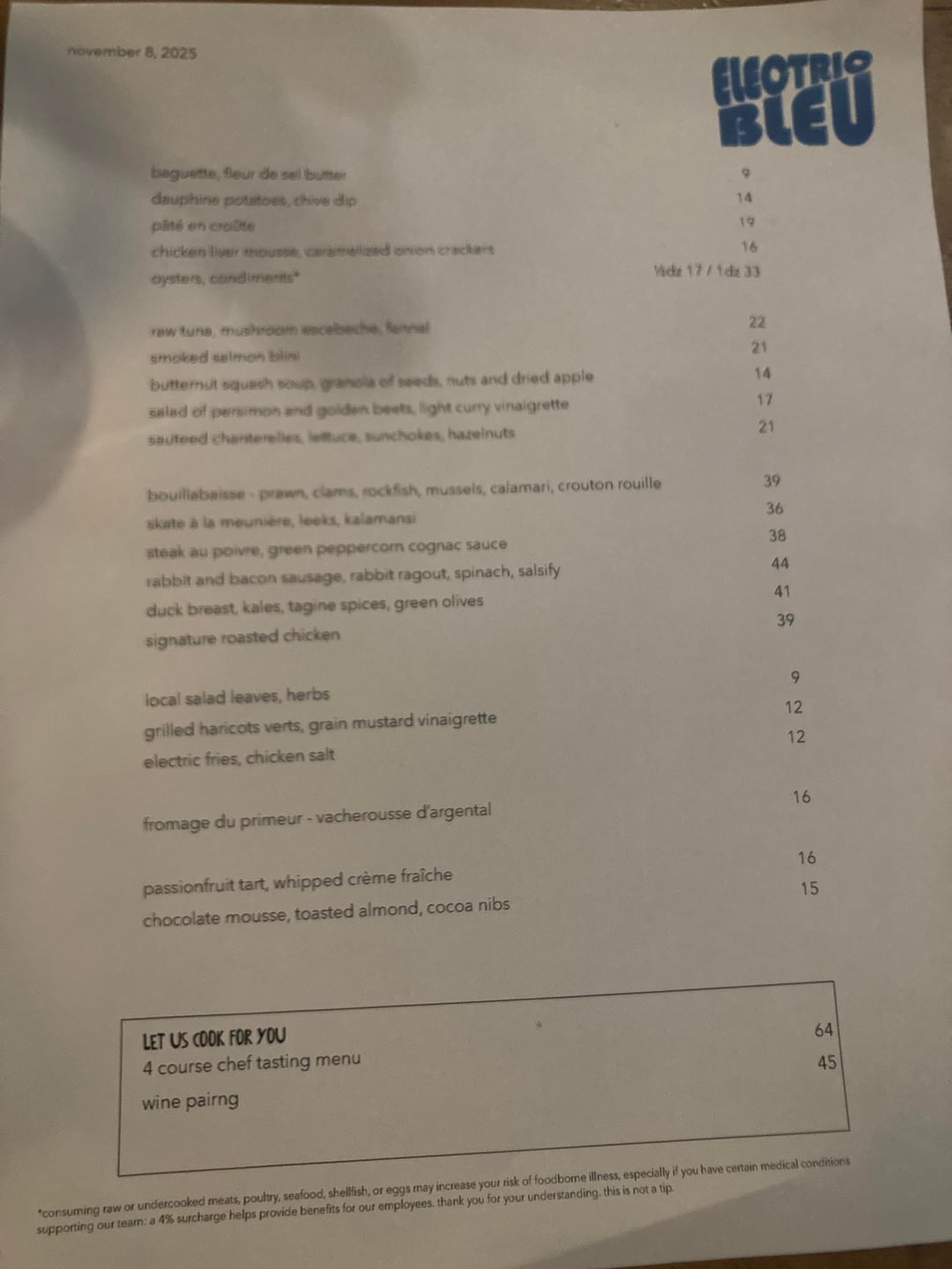 Waitstaff were attentive and helpful. The haricot verts had a chopped pepper on them that is not listed on the menu (not great) and the staff had them remake it right away (good fix). A lead from front of house who was very French came around and talked to all of us and checked in which was nice and added a personal touch.