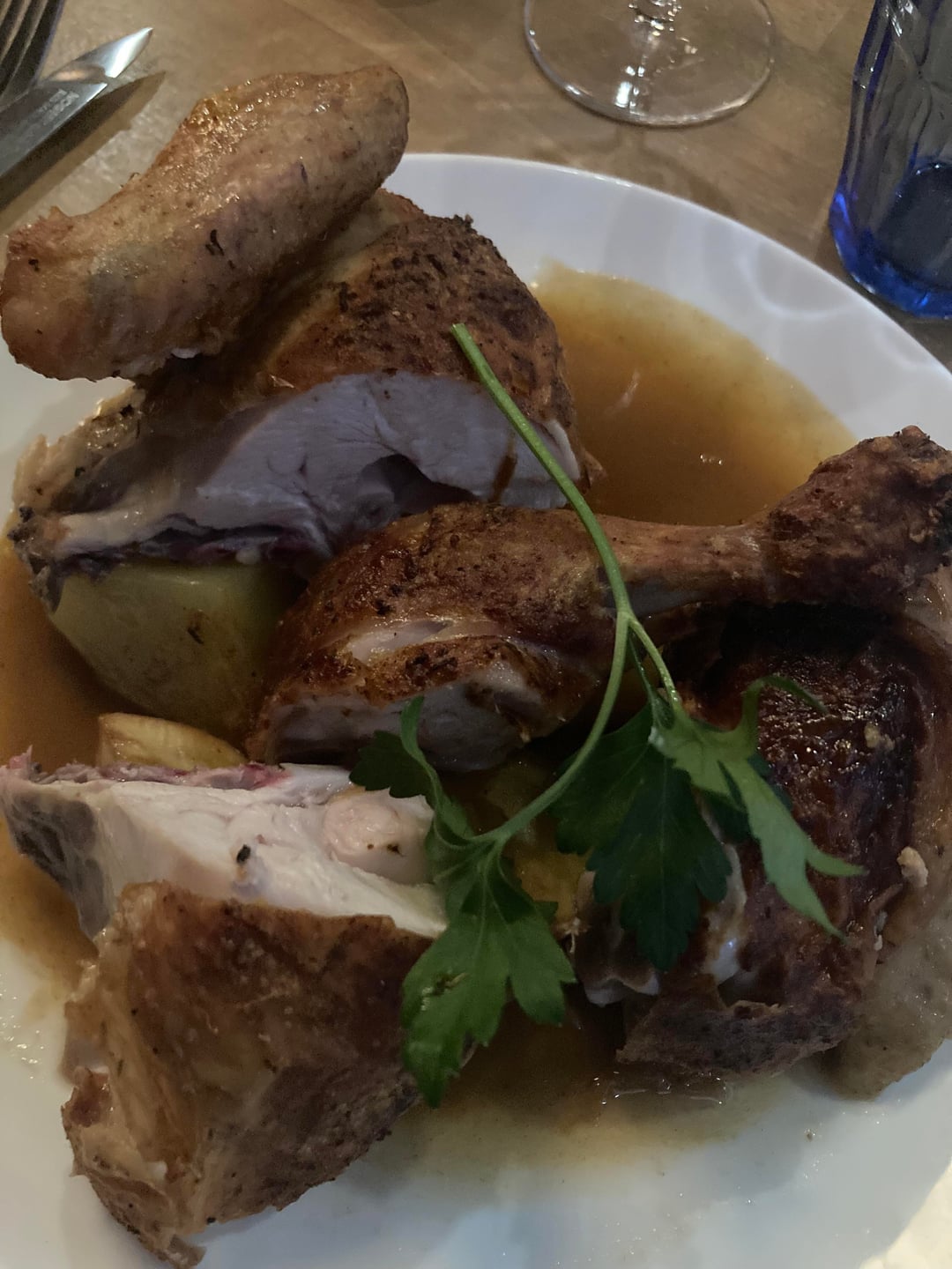 Honestly the chicken liver mousse was my favorite thing. It and the crackers were delish. I wish the roast chicken came with the gravy so you could pour it rather than on the bottom of the plate. Verts were yummy and unique with the mustard. Fries are solid and very good salty fries.