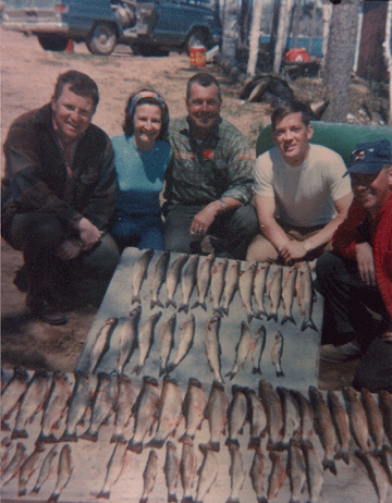 My grandfather, a friend, my father and an uncle on a fishing trip. These fish are for eating.