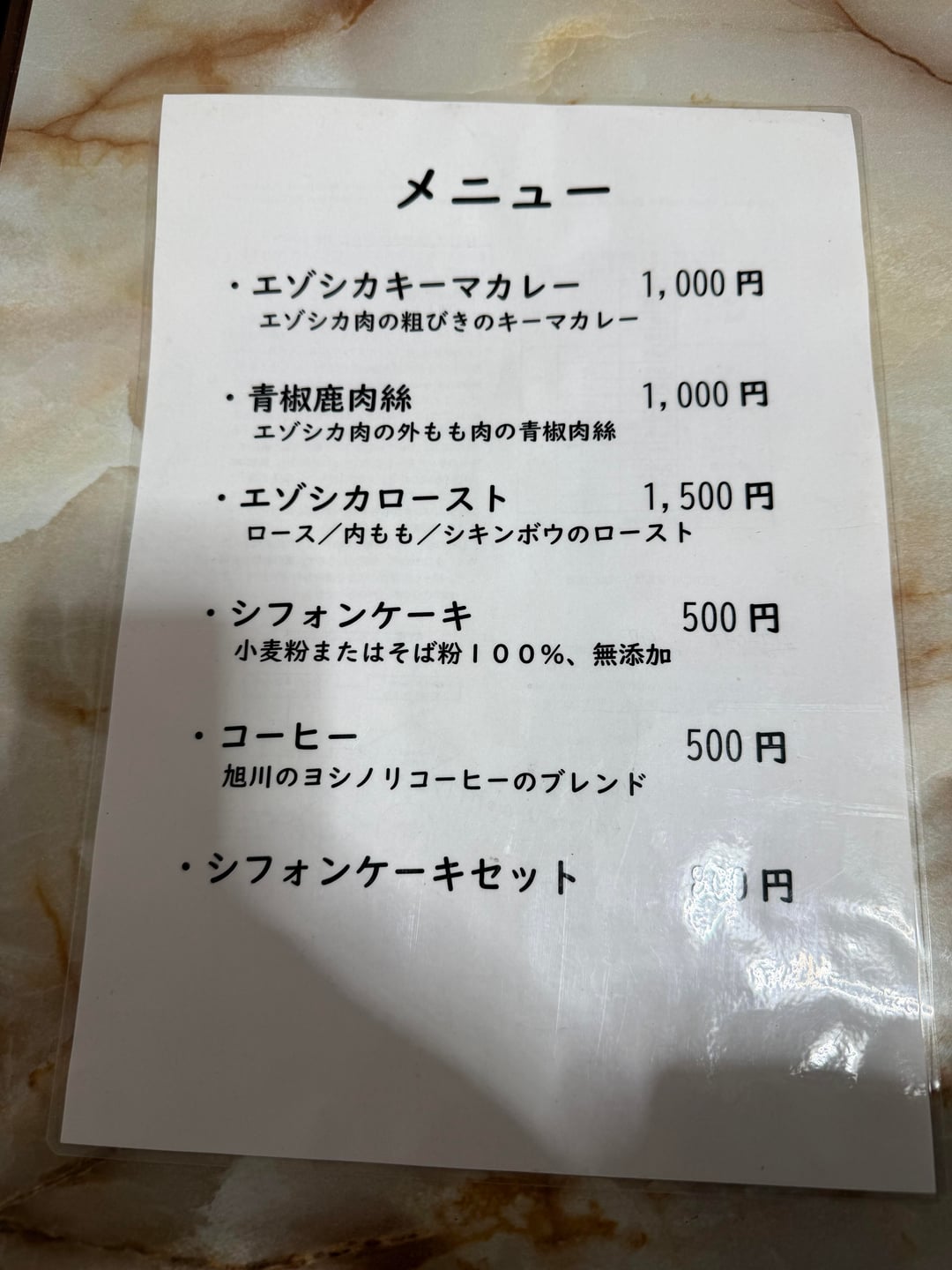 Way out here in the middle of nowhere, near Otoineppu in northern Hokkaido is a man that hunts and butchers his own Hokkaido deer, and makes curry, jerky, pasta, and roast! He also makes Chiffon cake out of soba (buckwheat). Absolutely delicious. Friendly owner and warm seating.