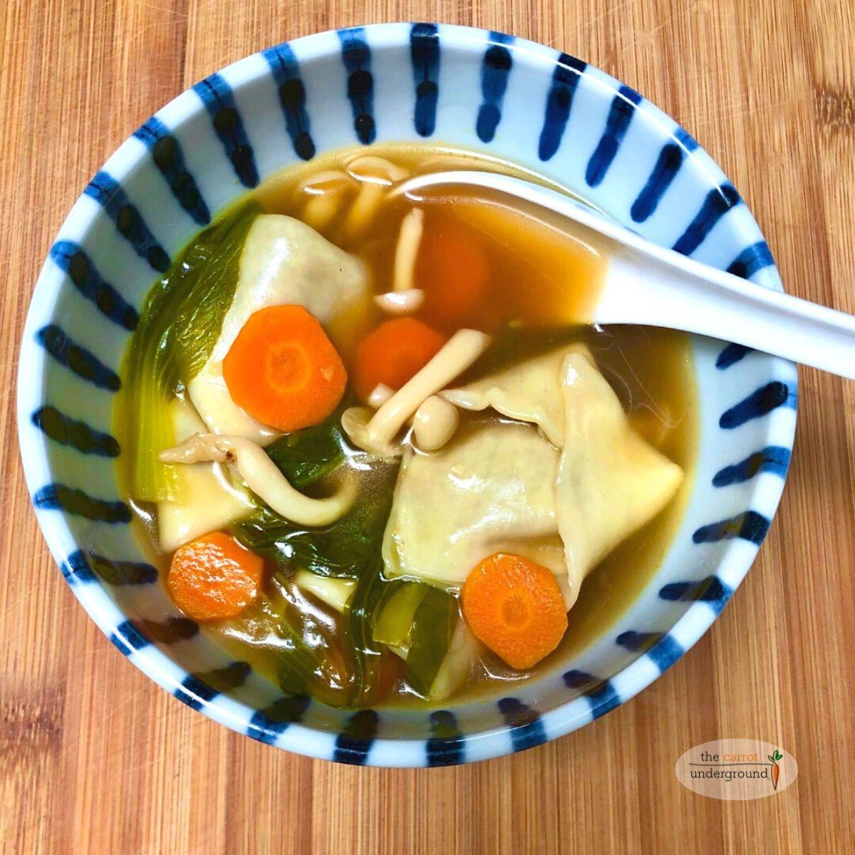 Have a souper Sunday! https://thecarrotunderground.com/vegan-soups-stews/great-homemade-vegan-wonton-soup/