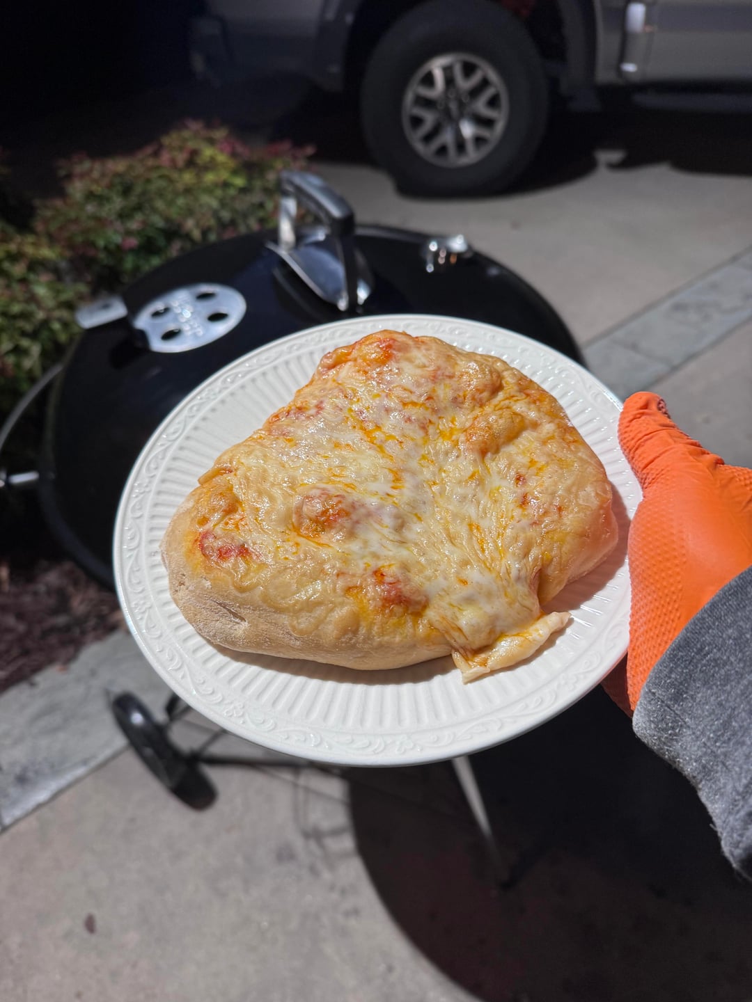 My son had already bought a pizza stone for me for Christmas before I even purchased the 26(have 22 Performer for years) so I assembled the new grill yesterday and made my first attempt at cheese pizza. Could have likely used 50-75 more degrees(getting used to fuel requirements for 26🤷🏼‍♂️) – room for improvement in my pizza making but didn’t burn them and very tasty!