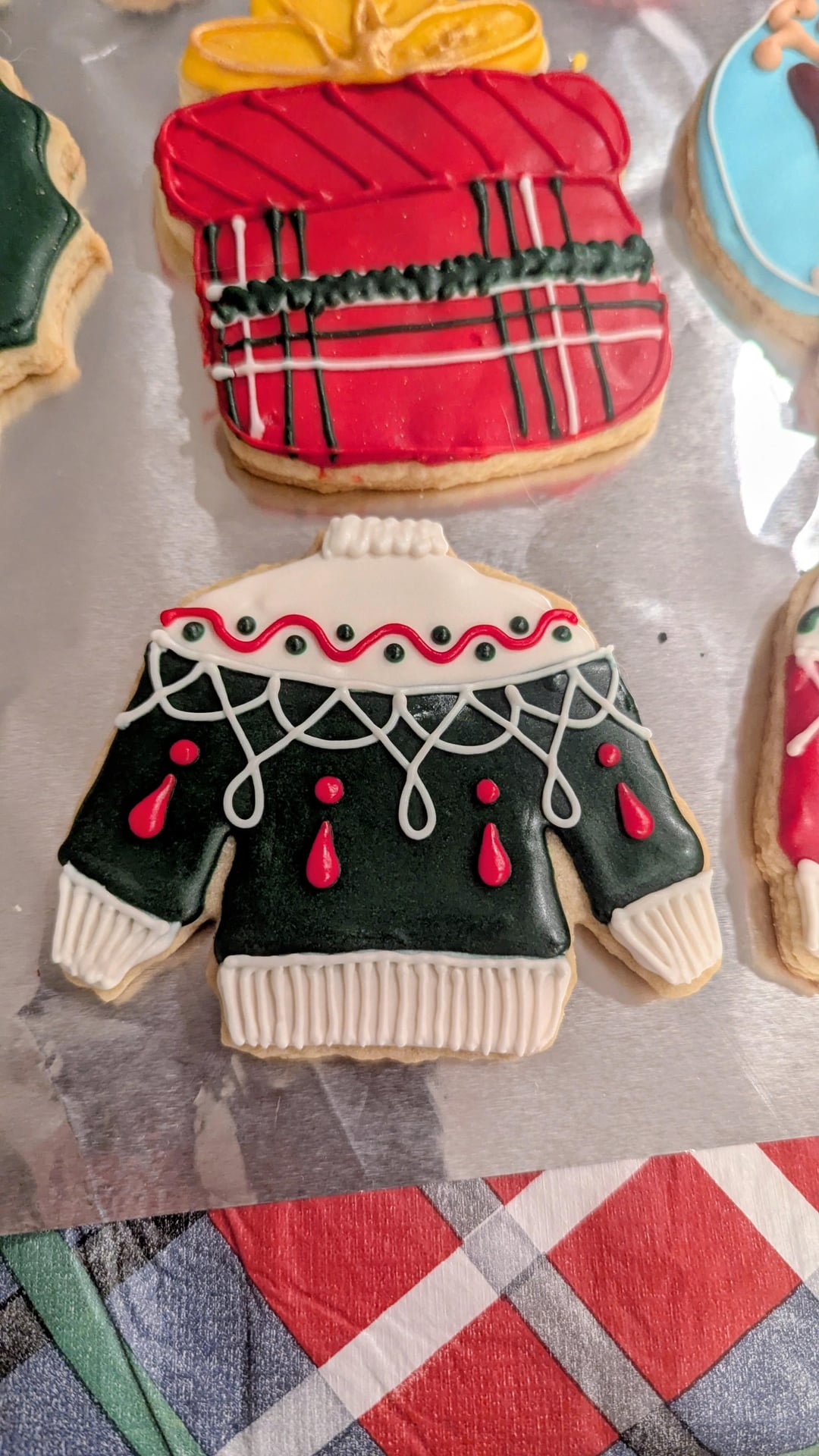 Background-Baby-9909 16 hours ago These cookies are exquisite! I especially love the ribbing on the sweater, and the fine border on the candles. Awesome talent! 👍