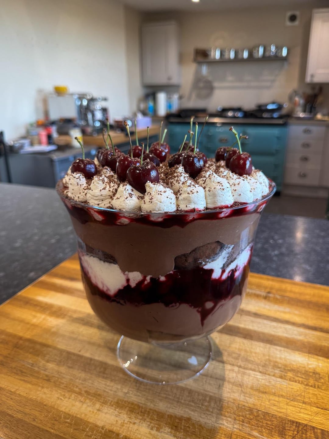 I love trifles. They’re perfect for someone like me who hates the extra steps of making something look pretty. Make all the stuff, then slap it in layers in large glass bowl. I also love black forest cake.
