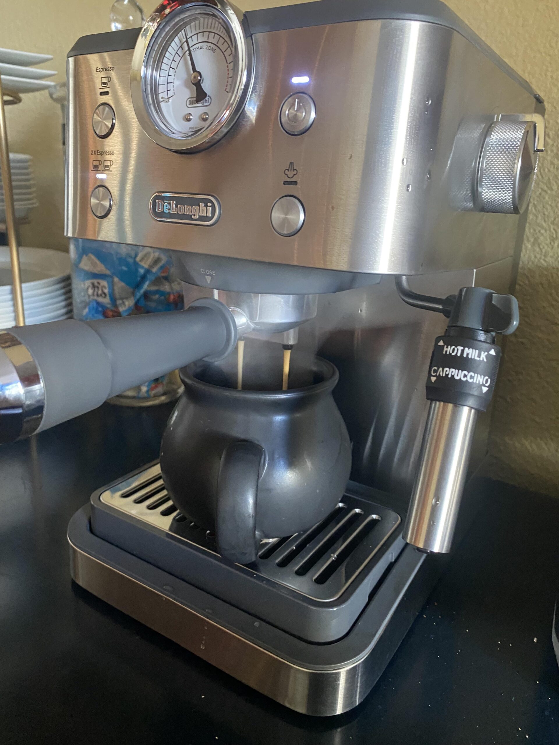 My first espresso machine ! I loved it thought me a lot . I recently upgraded to a Breville Bambino Plus but I refuse to get rid of this machine . One day I’ll have room to put them both . Enjoy it