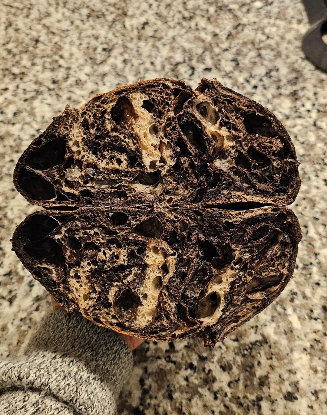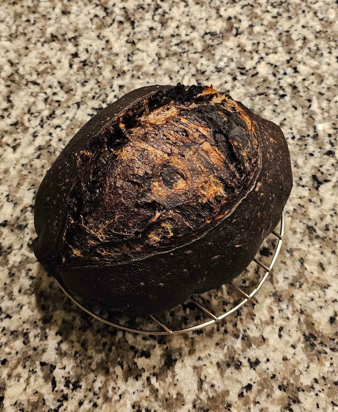 First loaf in the picture is a marbled rye, and next time I would reduce the cocoa powder by half, because it just tastes like a chocolate bread.