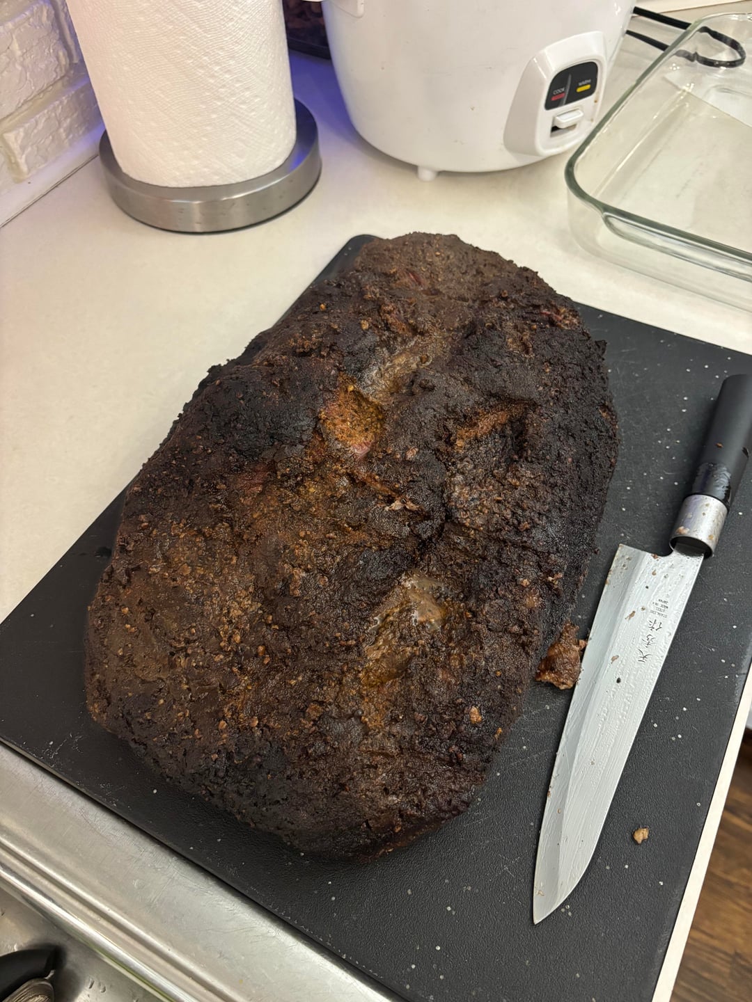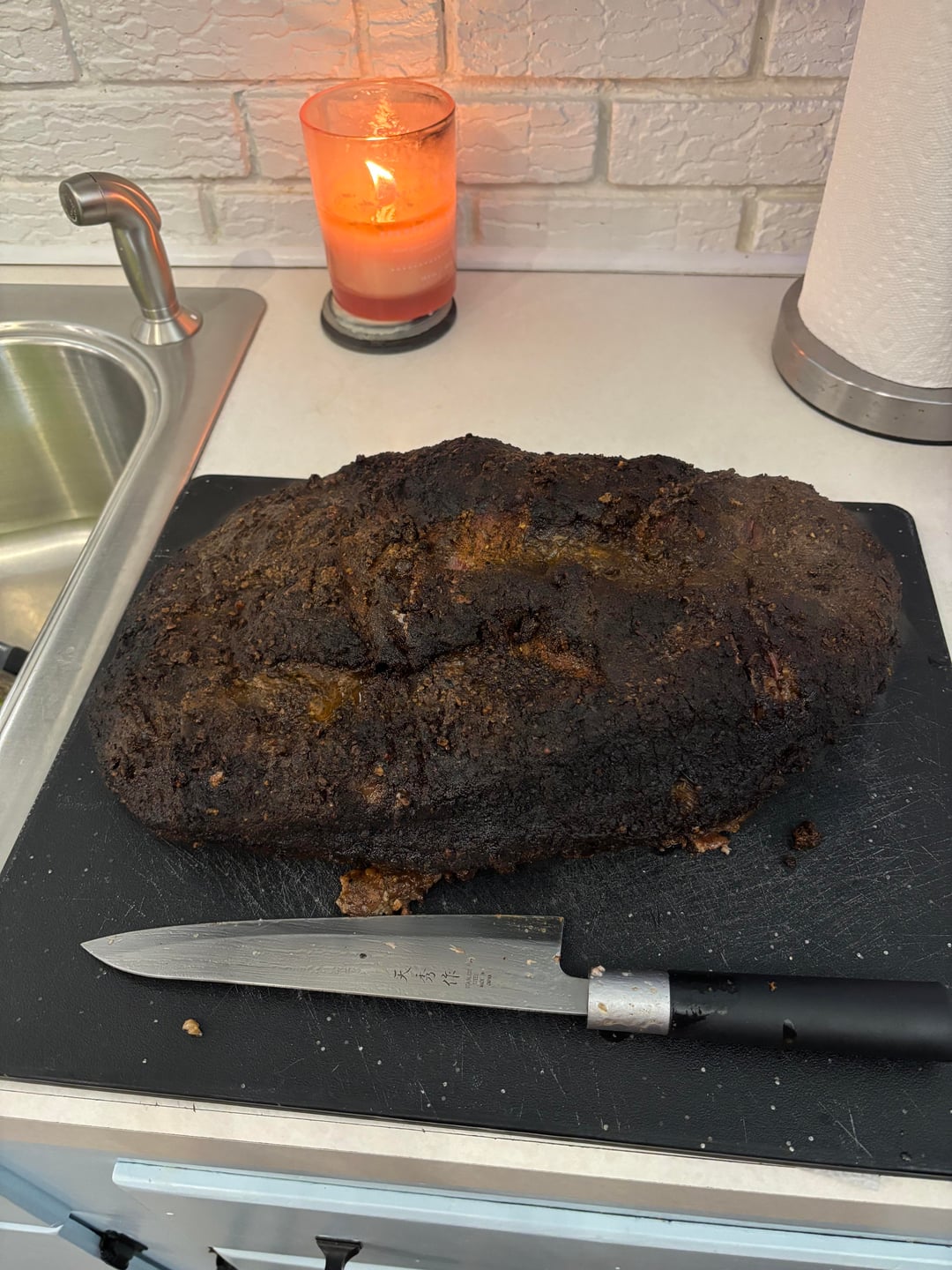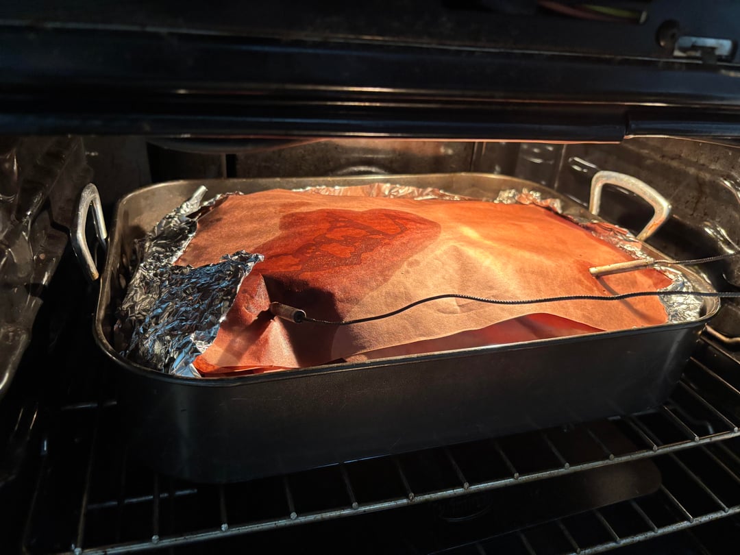 10- 10:45pm internal temp reached 200° and was definitely probe tender. Pulled it out and waited for oven to cool down to the minimum 170° so it could rest the rest of the way.