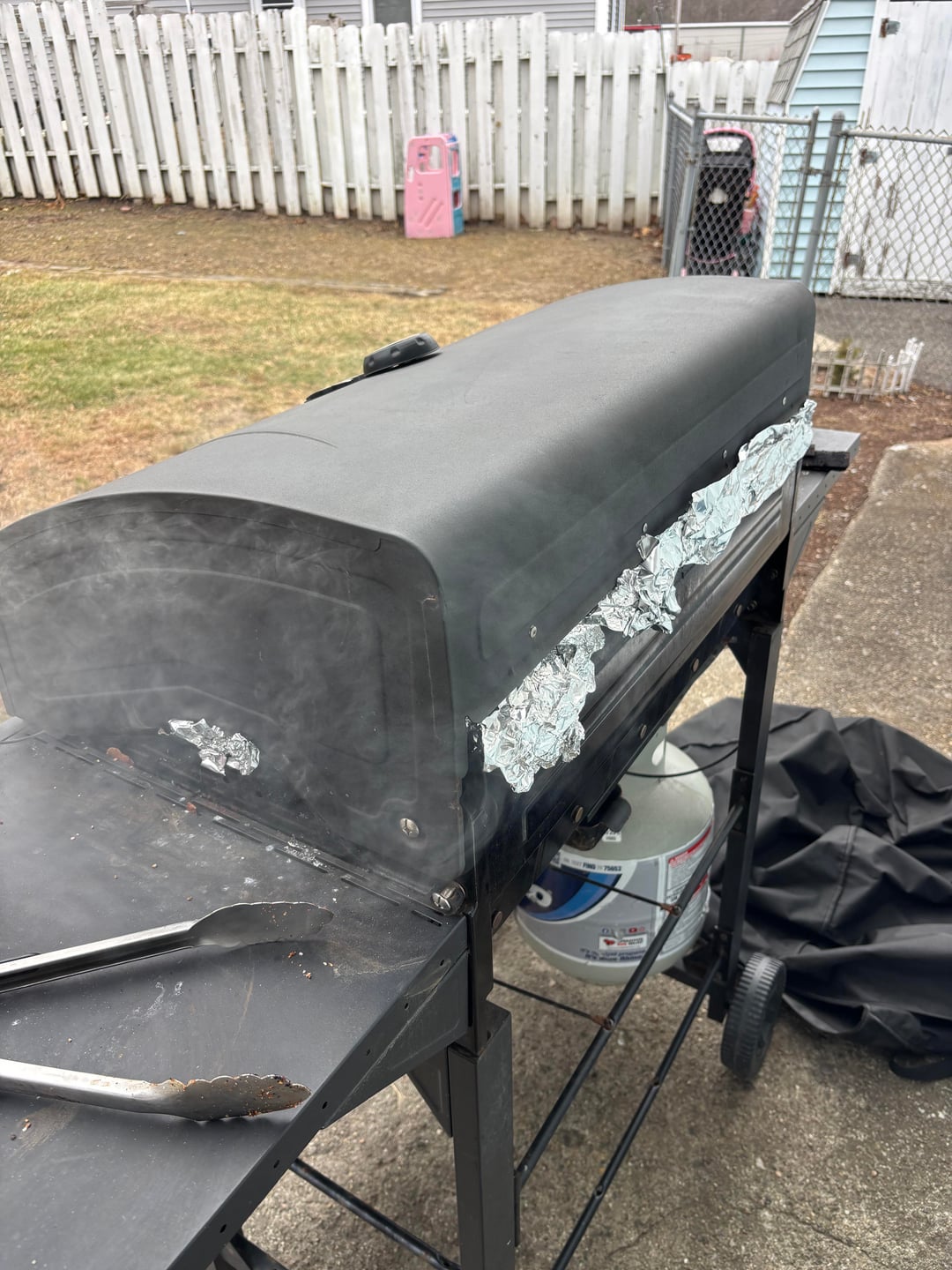 6- I had to place some aluminum foil and cover some of the open slots around the grill. I think it helped focus more of the smoke on to the meat.