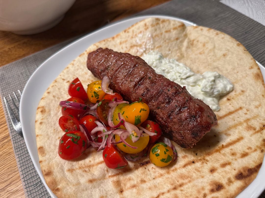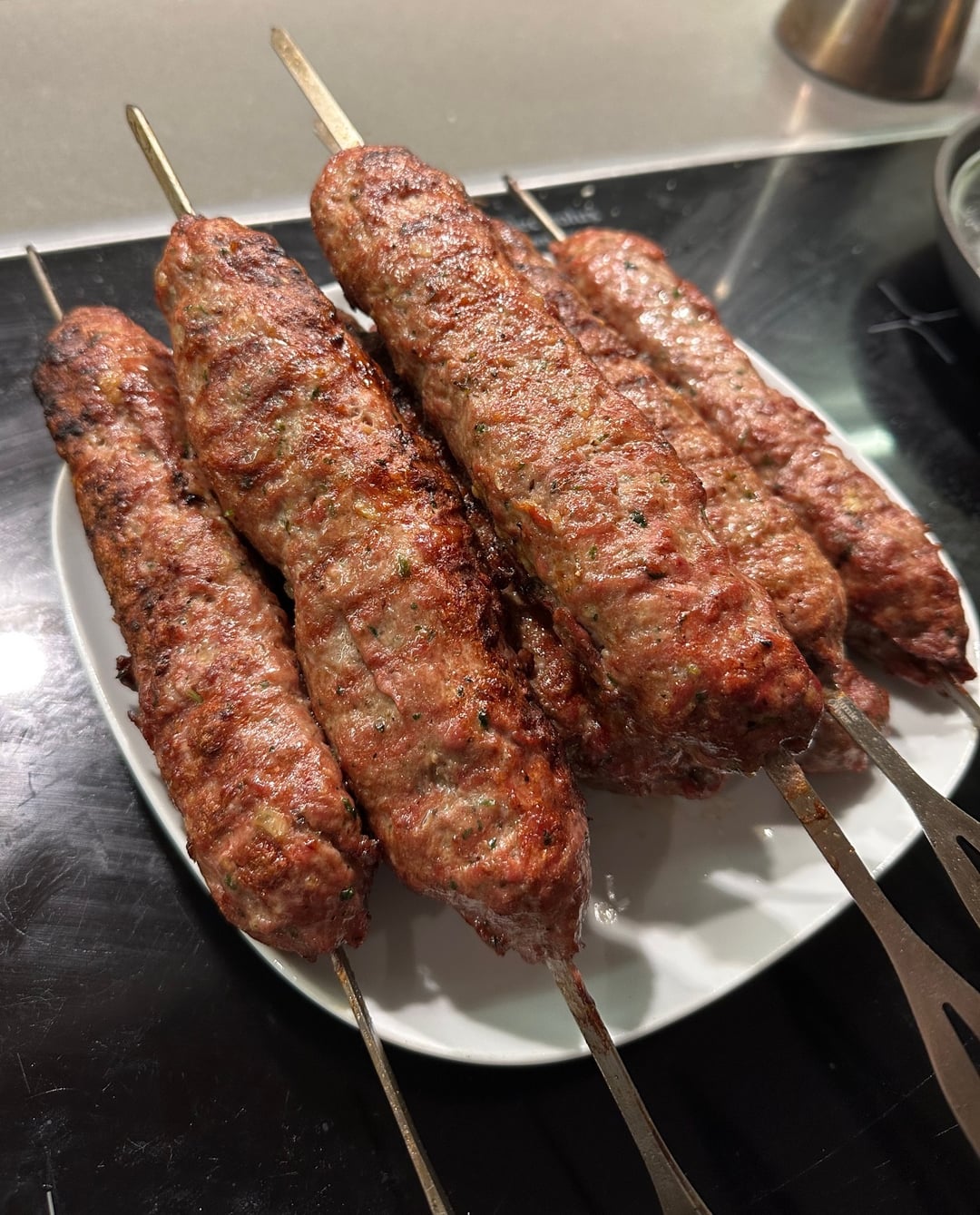 Forgot to mention – the key is to knead the meat mixture for 10 minutes, almost exactly how you’d kneed a bread dough. The goal is stretch out the proteins so the mix holds shape and doesn’t sag when on a skewer.