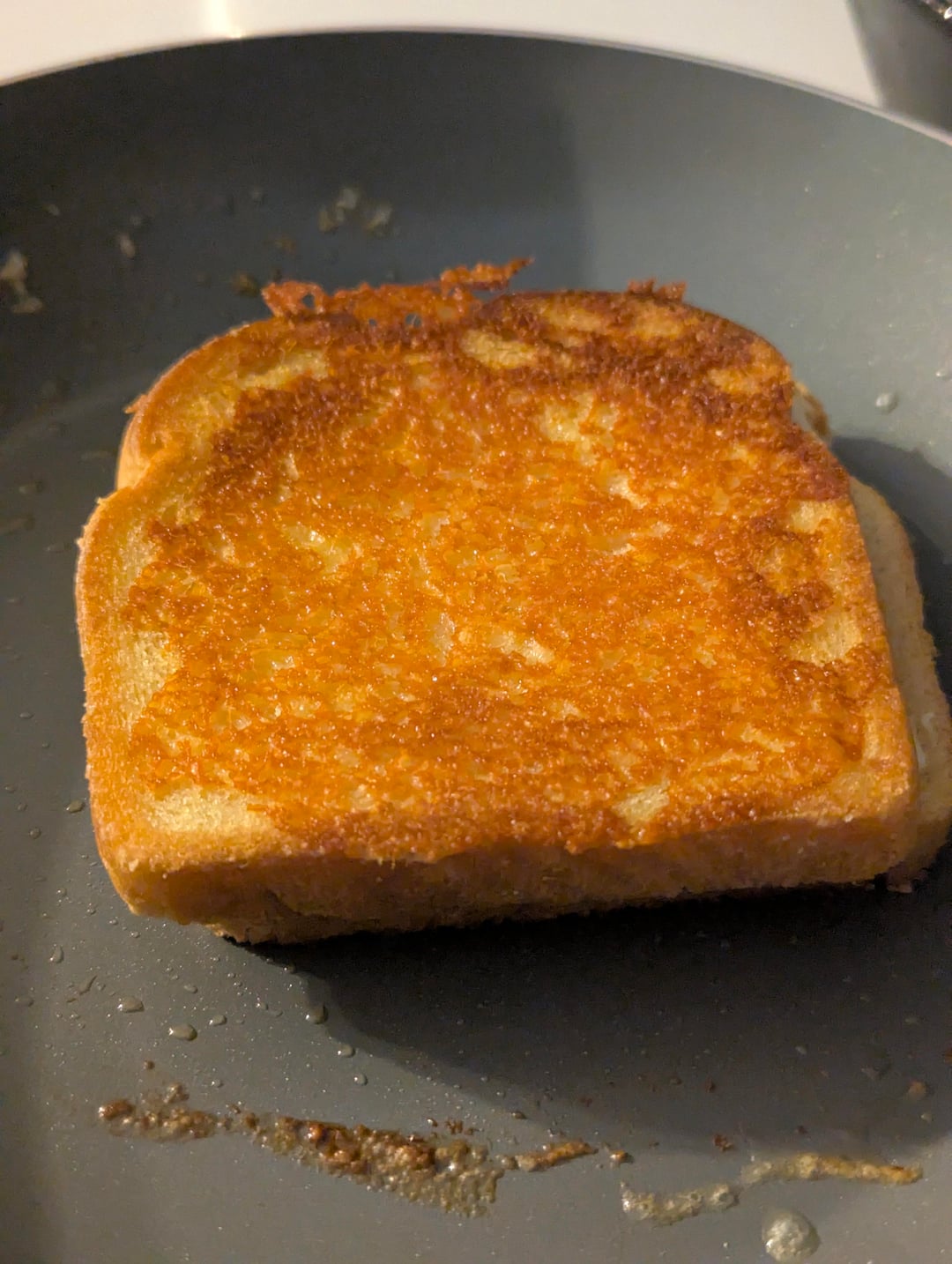White bread, butter, American inside, shredded Colby Jack on the outside.