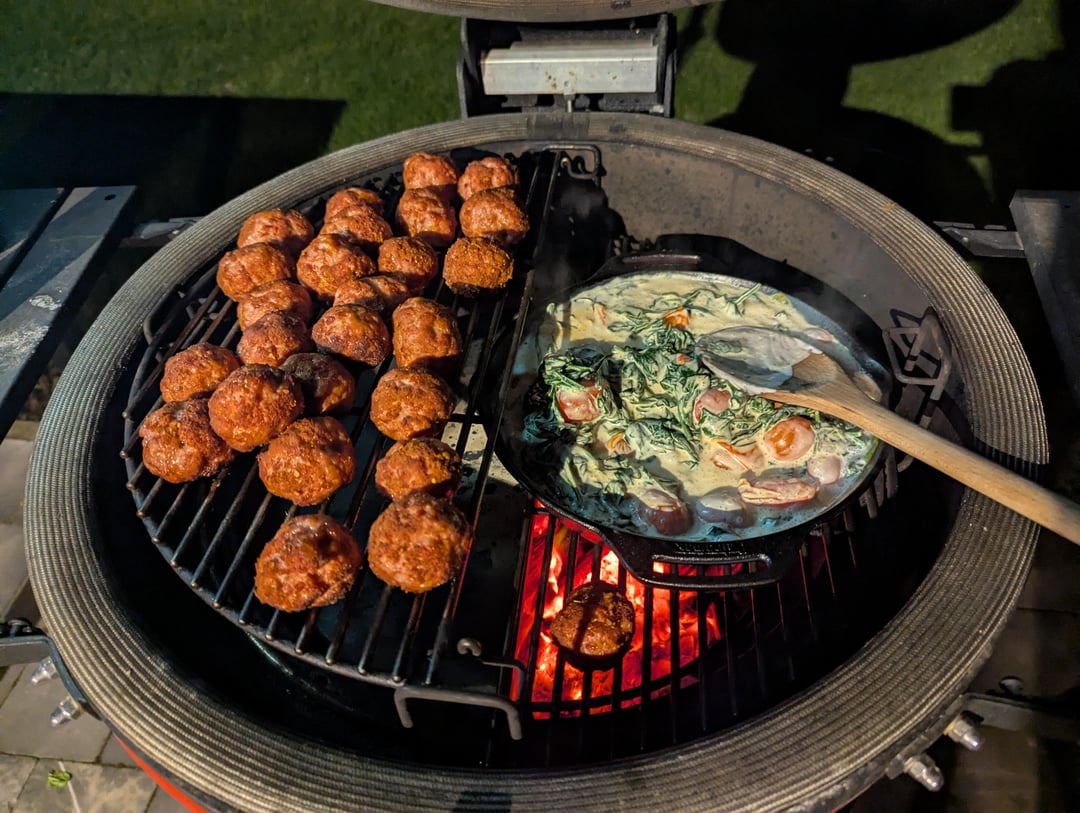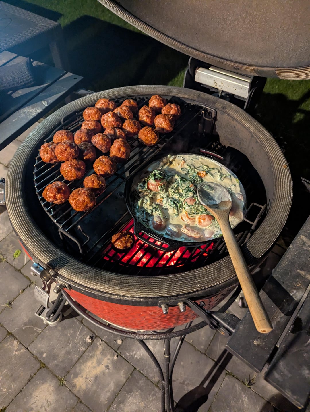 Smoked meatballs with spinach, cherry tomatoes, coconut milk and red curryby Cedric112 Dining and Cooking