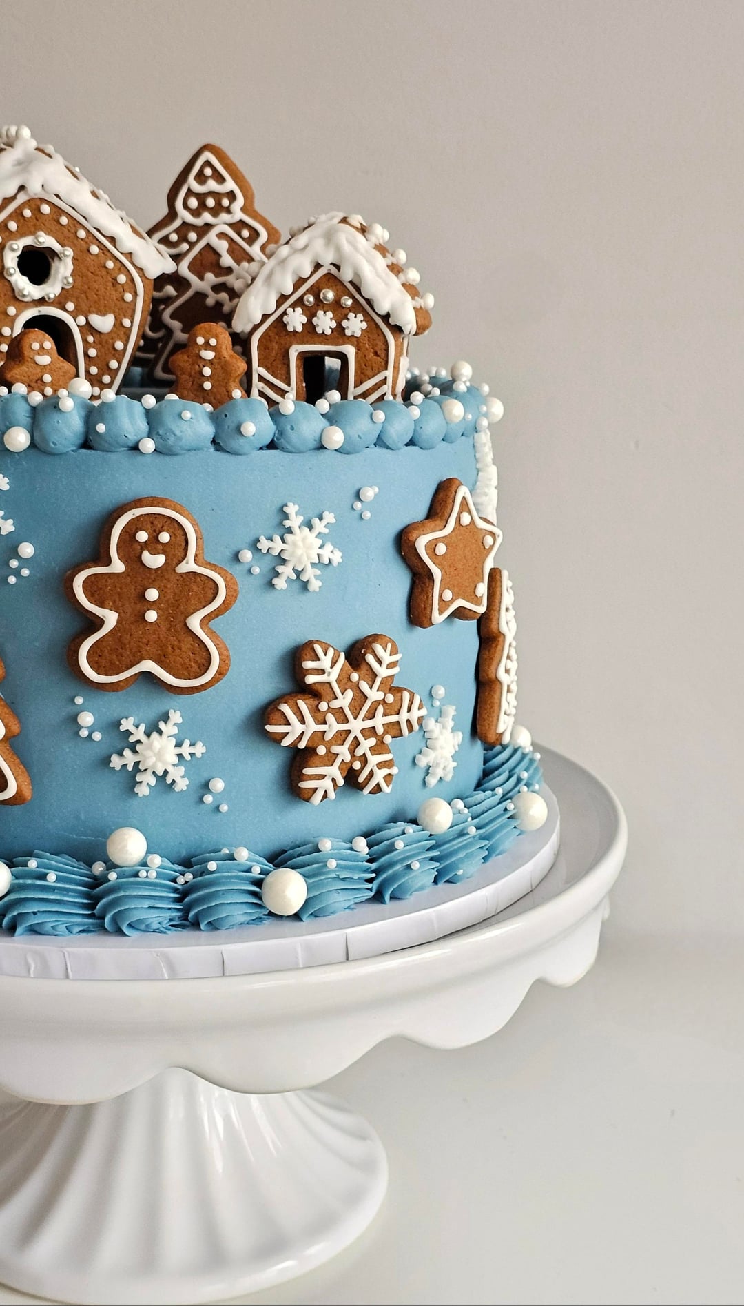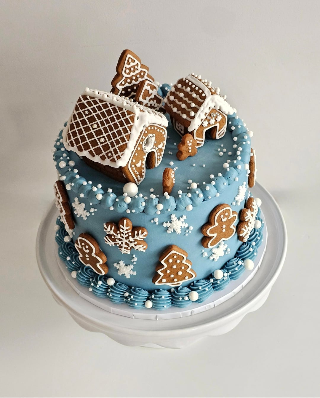 This is really a masterpiece! It is absolutely beautiful. I love the color of the icing. The little gingerbread houses on top, the tiny gingerbread men, the snowflakes, and on and on. It is perfection. I bet it was delicious too!