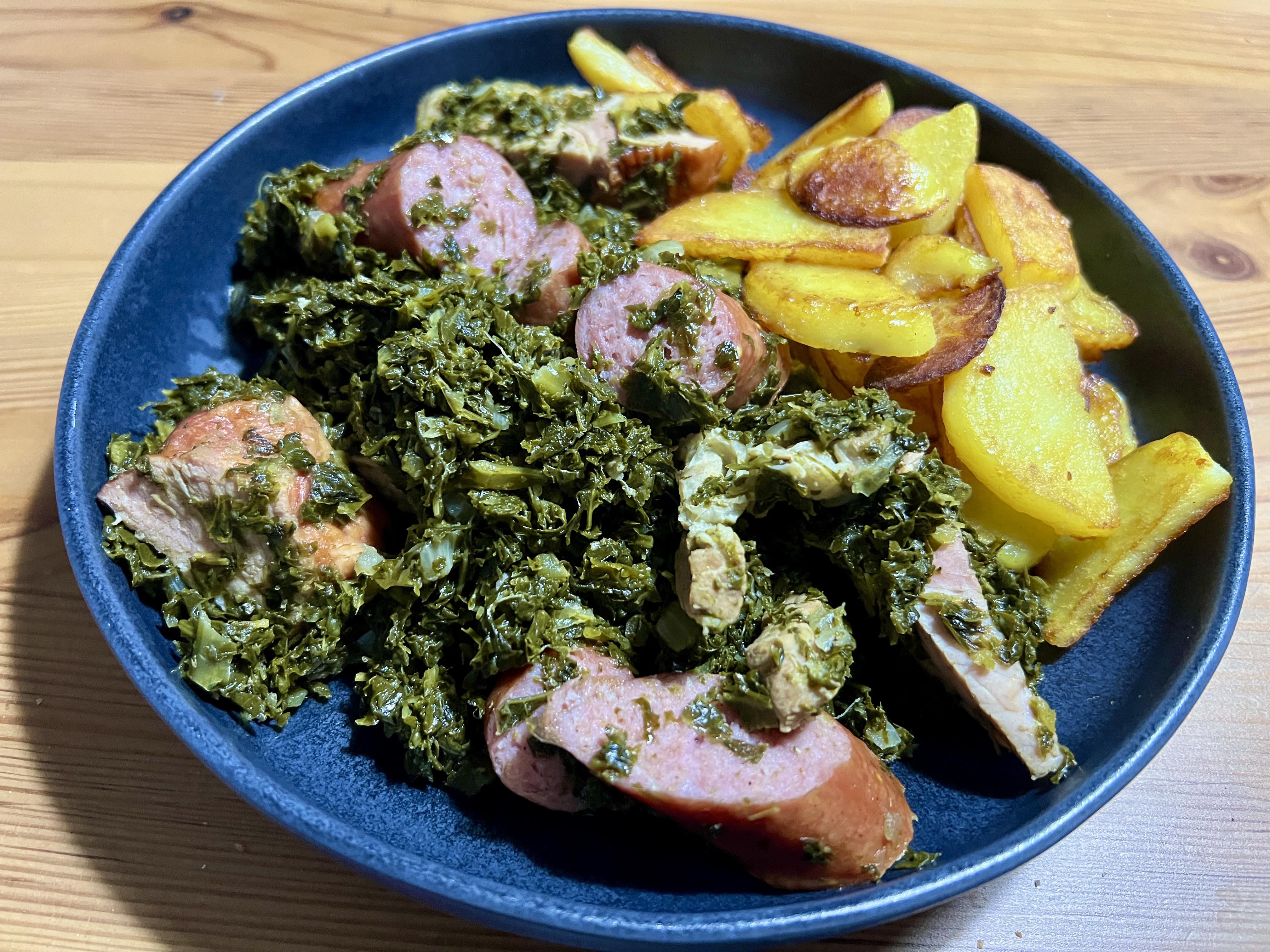 Kale, pork belly, Kasseler, Mettenden, in duck fat and clarified butter fried potatos. by hansebart 1 Comment Subject_Slice_7797 2 days ago Love a nice Grünkohl. Did you cook it yourself? I must admit I usually go for the canned stuff and pimp it with the meats and sides