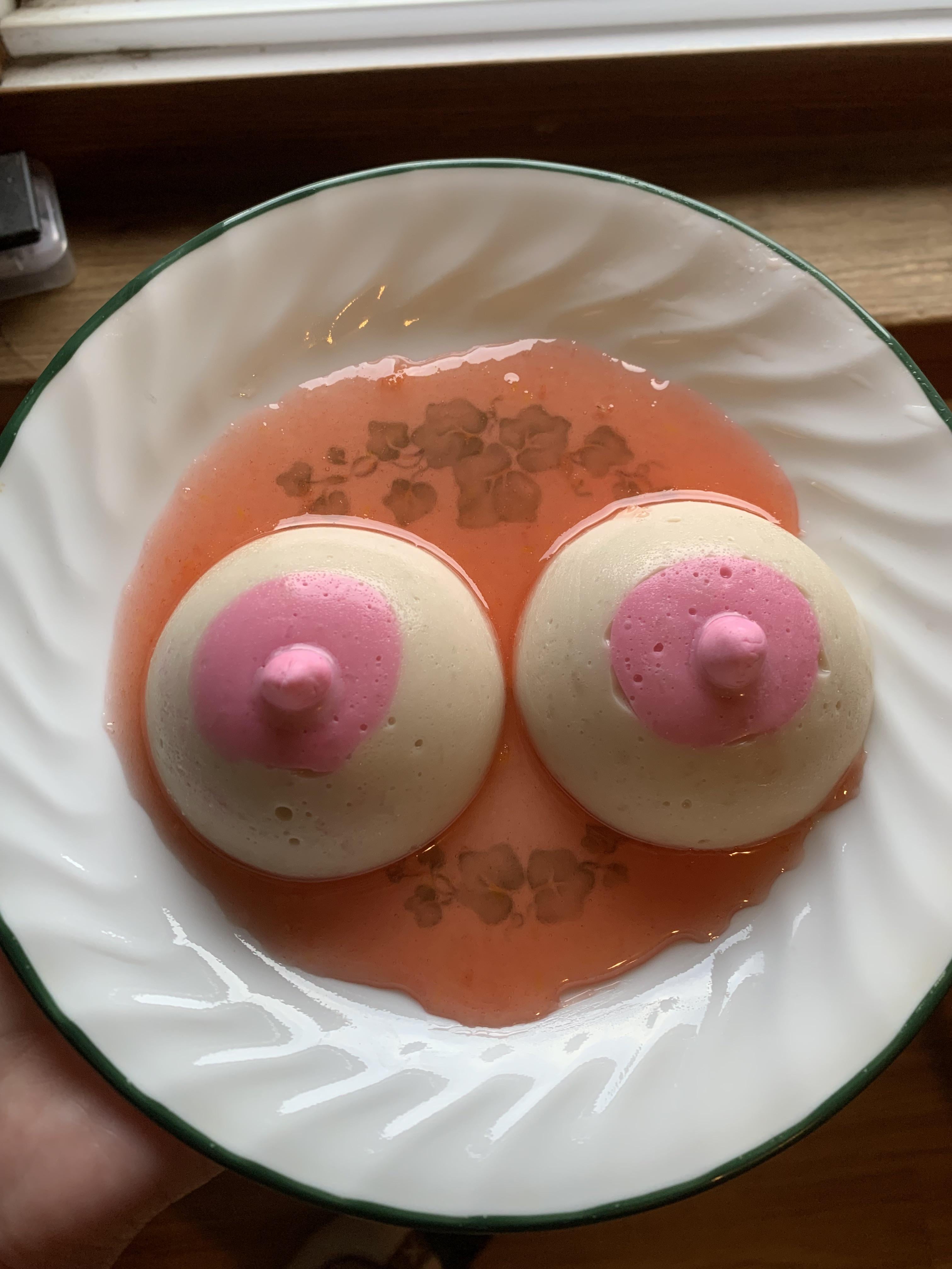 Coconut panna cotta with rose syrupby bisousbisous 6 Comments IWorkOutToEatChips 2 weeks ago Do they jiggle tho FfantasticFfictional 2 weeks ago Boob soup? Fuzzy_Welcome8348 2 weeks ago Curious to know what it actually is lol 😂 Magisterbrown 2 weeks ago Saint Agatha? OppositeRemote42 2 weeks ago Your username fits so well hehe doubled_pawns 2 weeks ago When you suck on these, is there a sweet taste?