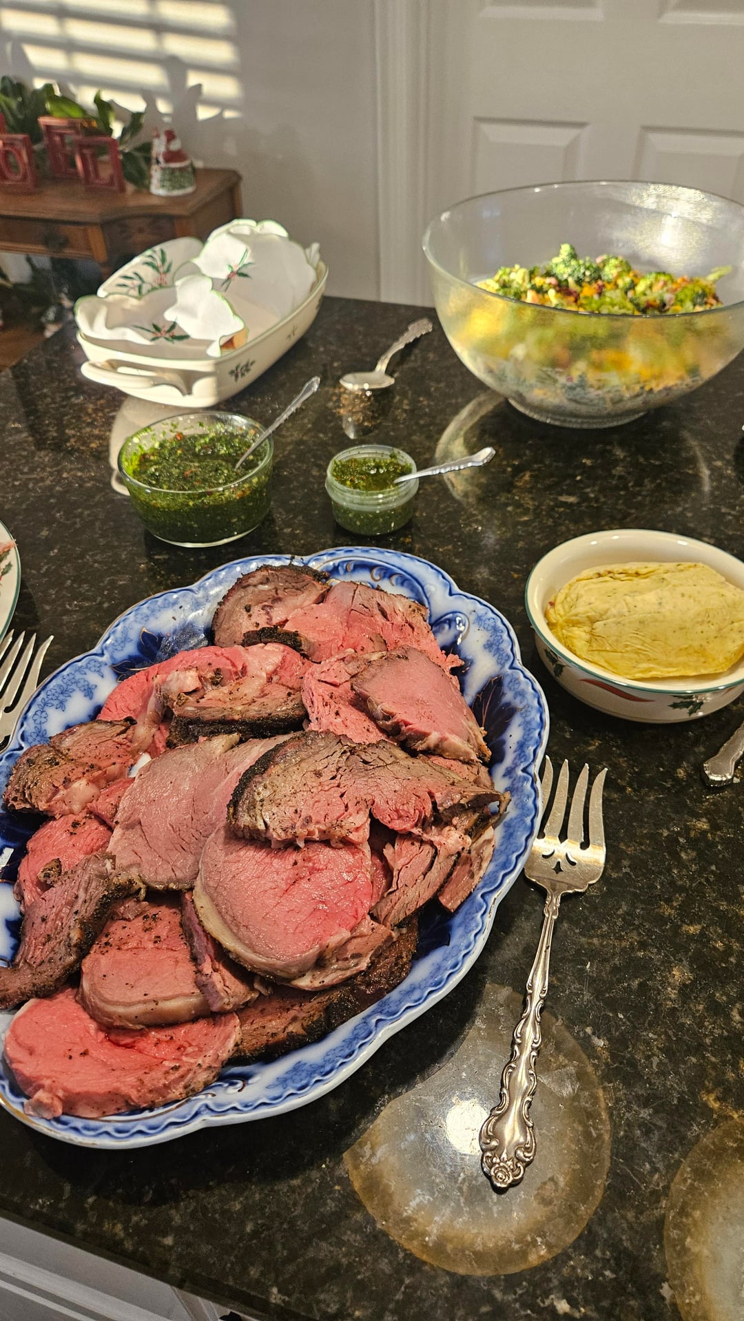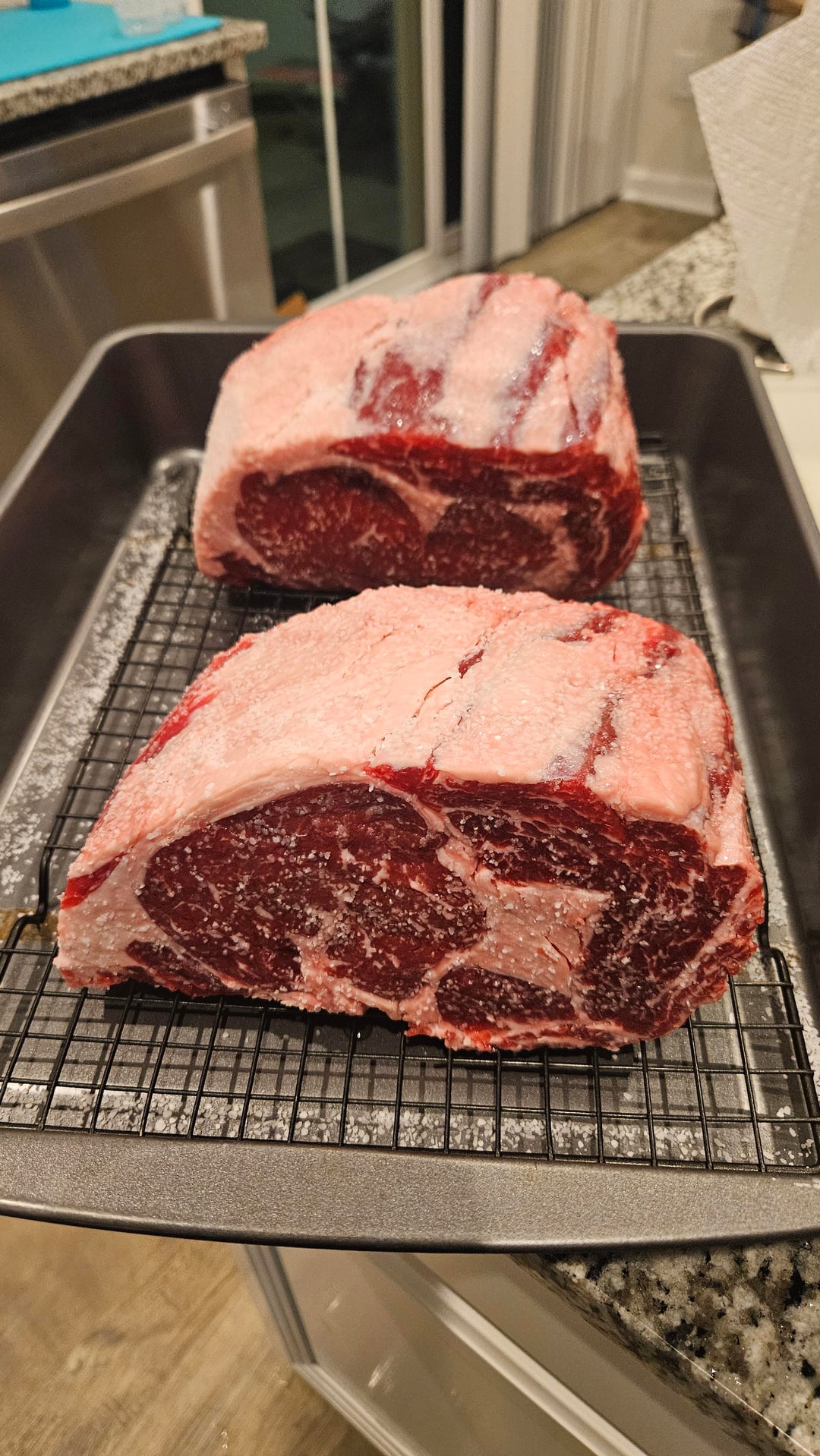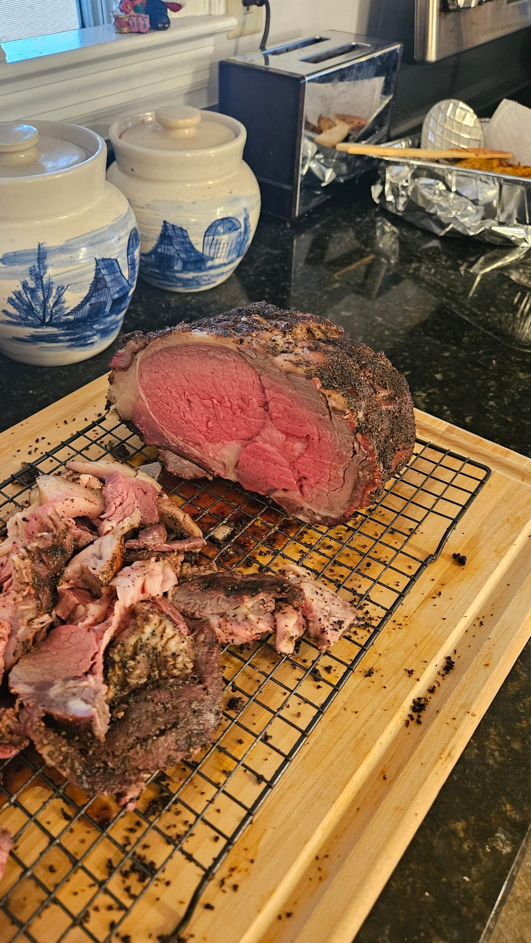 -8.7lb choice boneless from a local butcher -Cut in half and dry-brined around 40 hours -Homemade coffee rub -Smoked on WSM with pecan wood from tree knocked down during Heleneby BrickTamland77 2 Comments Silver-Surfer_000 1 month ago Looks very fine.. Ashamed_Bicycle2323 1 month ago Looks grubbin’ to me. What was the final temp?