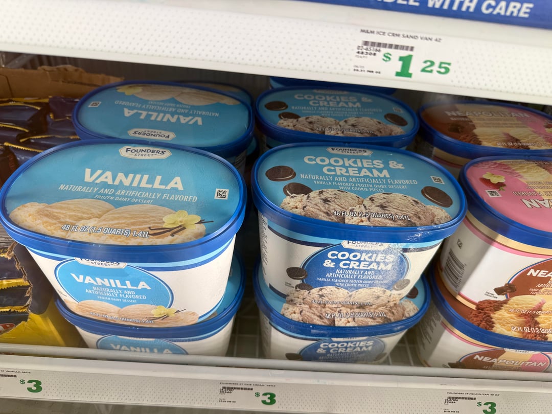 Founders makes both real ice cream and frozen dairy desserts. The margins on pints are higher, so some companies put their more premium line into the pints.