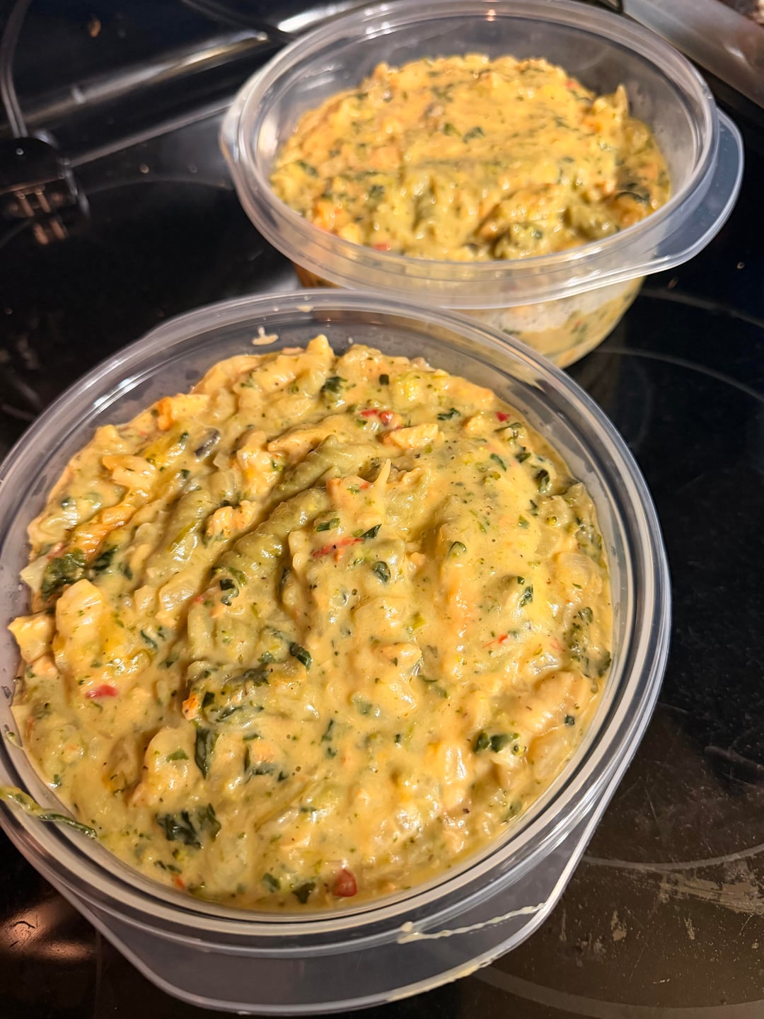 Looks so good. Put it in a pan and throw it in the oven with some breadcrumbs if it thickens too much in the fridge.