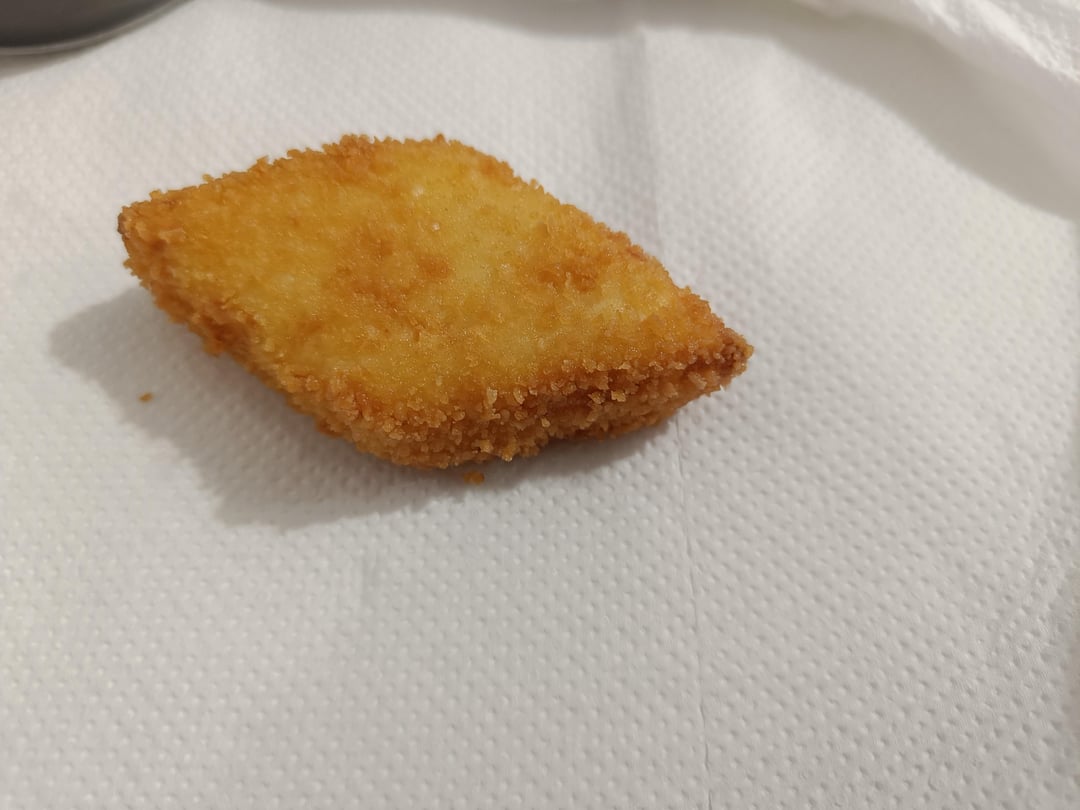 Once you've cut your sweet semolina into pieces, you can eat it as is (it's delicious as is), but if you want it like a fritto misto, dip it in the egg and coat it lightly in breadcrumbs.