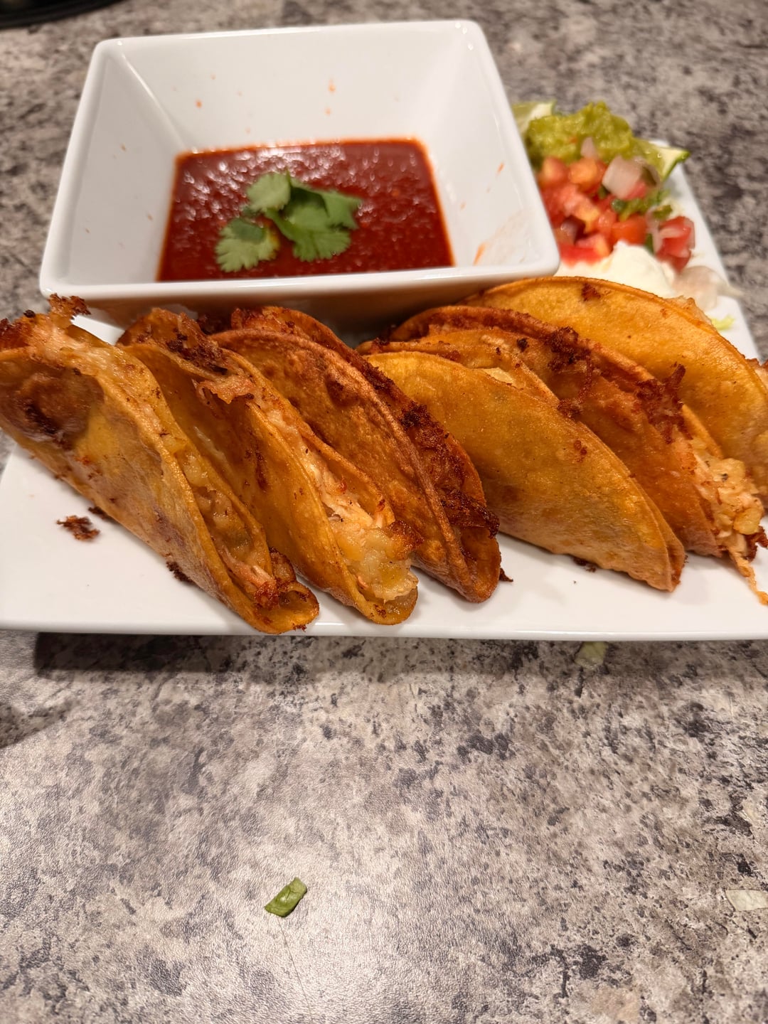 [homemade] Tacos de Papa y Pollo ( potato n chicken tacos)w/ homemade salsa