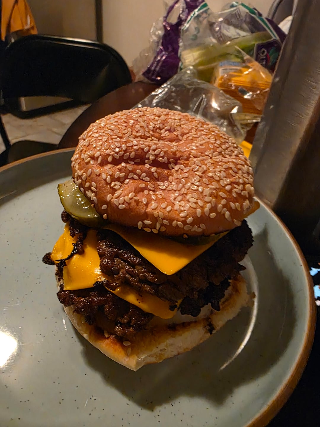 This is a double cheeseburger with extra extra pickles and onion. I’m sure it’s tasty, but a smash burger it isn’t.