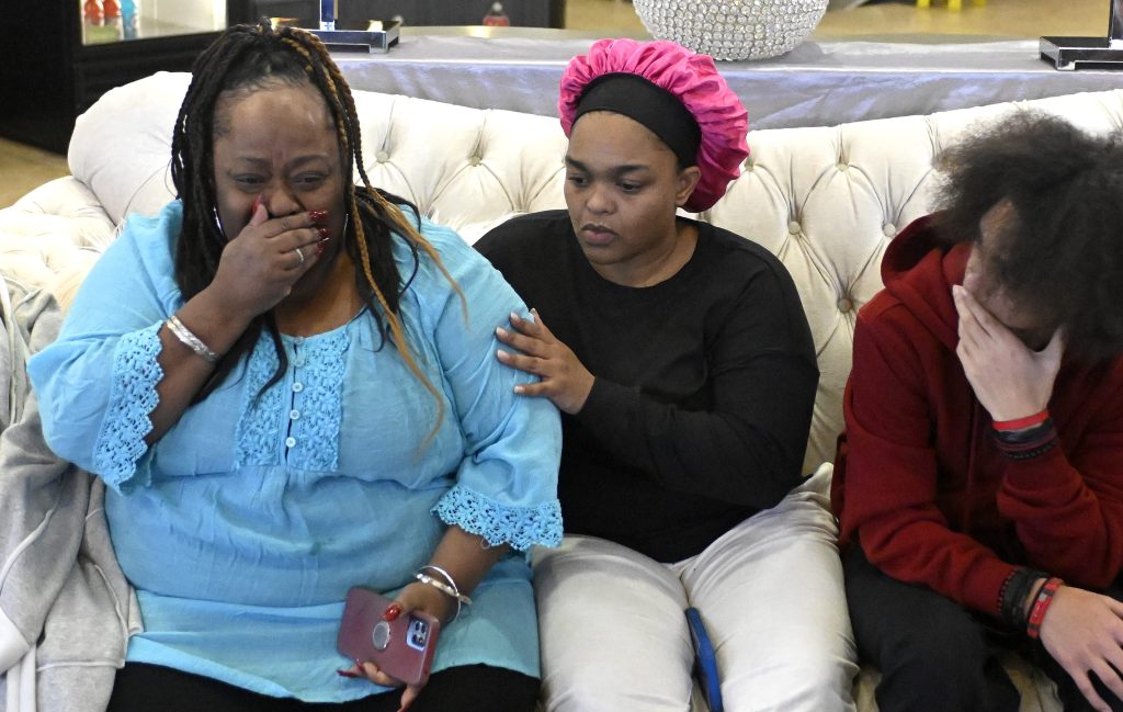 Katrina Smith, from left, sits with her daughter, Leandrea Hernández, center, and Hernández’ son Aiden Hernández, 13, as they talk about the Christmas Eve fire that destroyed their home in Zion, Dec. 27, 2025. (Michael Schmidt/for the Chicago Tribune)