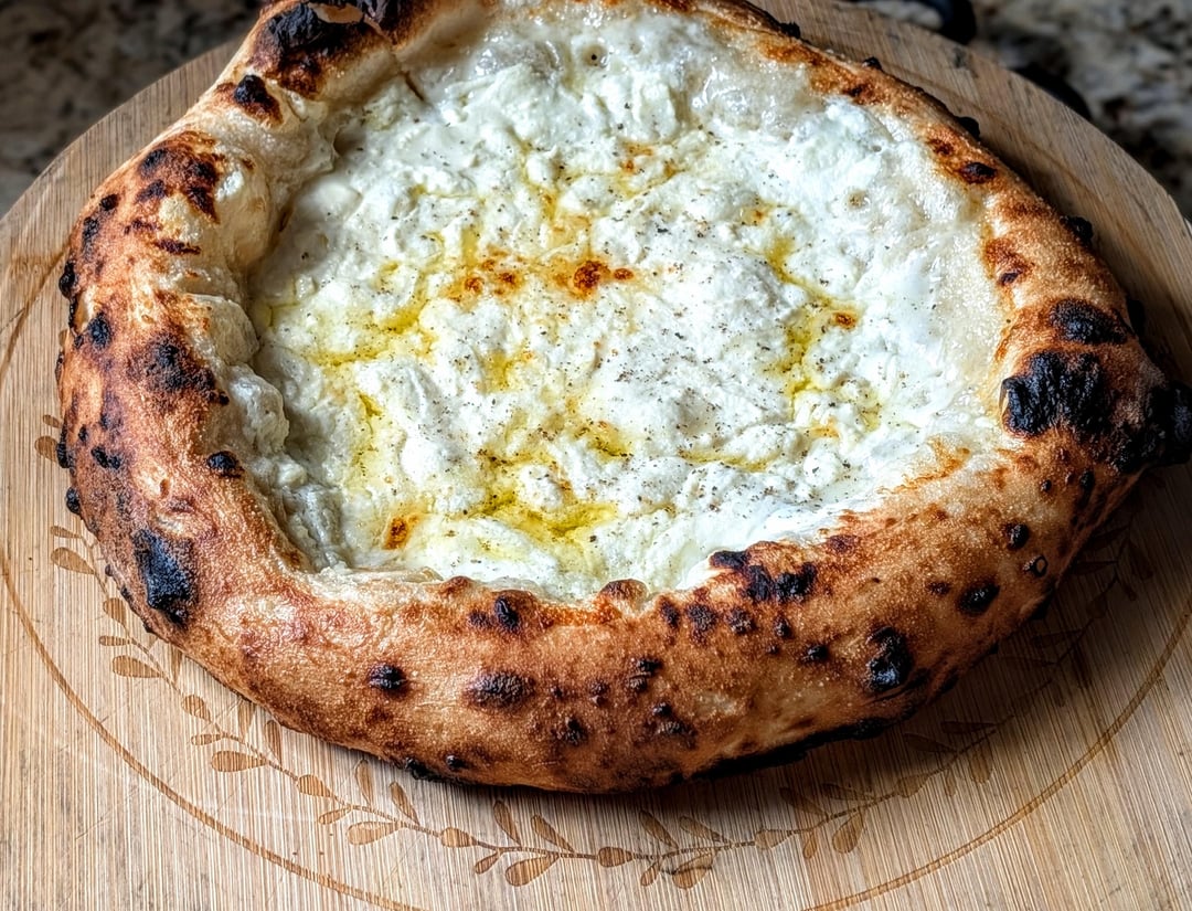 Used Julian Sisofo's 0G Poolish recipe. 70% hydration. The best recipe out there imo. First pizza was a Caciocavallo, Galbani Ricotta & Pecorino (w/ cracked pepper) Second was traditional Margherita.