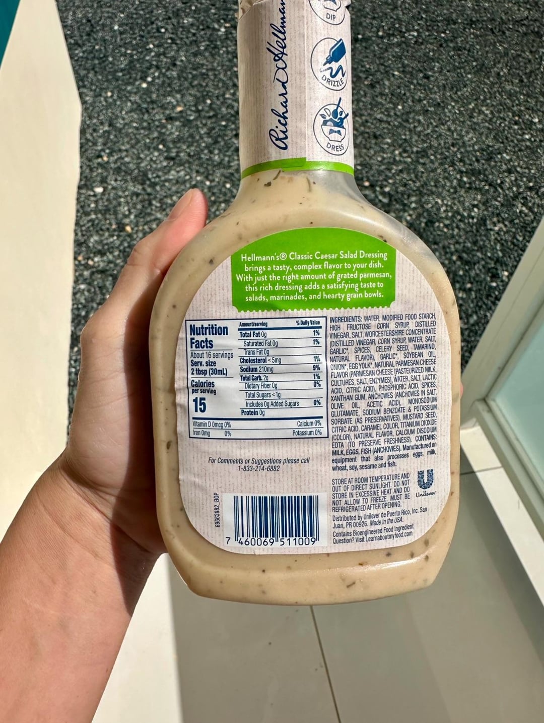 I’ve bought this dressing multiple times at home, but now that I’m visiting family for the holidays I can’t find it anywhere. The stores that carry something similar (same brand, same name) only sell it in a huge $50 jar, and the calories are more then 8x what’s stated on the containers I buy at home. But most places didn’t sell Hellmans Dressing at all. The majority of the other Caesar dressings of various brands were 8-10x more calories per 2tbsp.