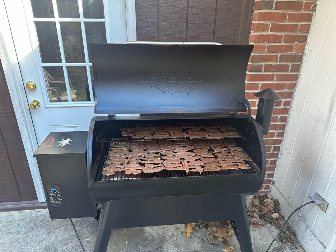 Got this thing loaded down with some venison jerky strips im gonna be using some competition pellets and running it on the smoke setting. This is my 4-5th time doing this my kids love it.