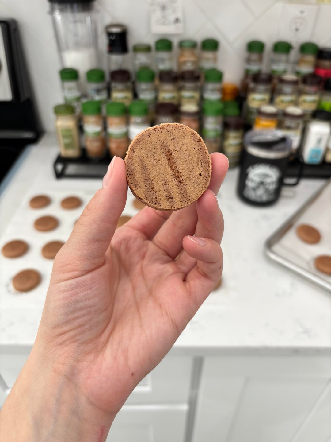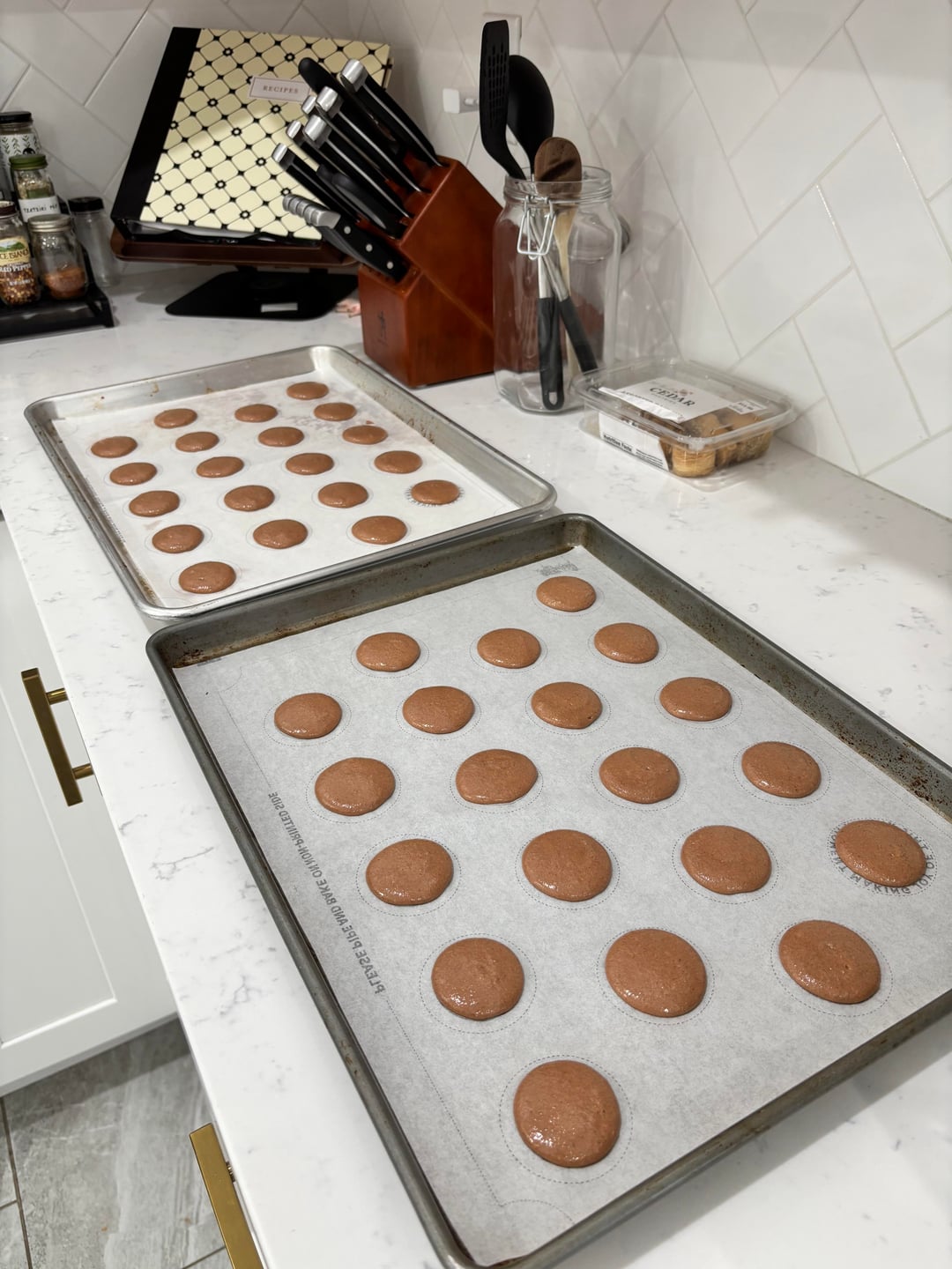 I baked them at 290F for 24min, the bottoms are still a bit thin but the rest of the shells could have baked a little less. Overall I'm not mad, it still look and tastes like macarons haha.