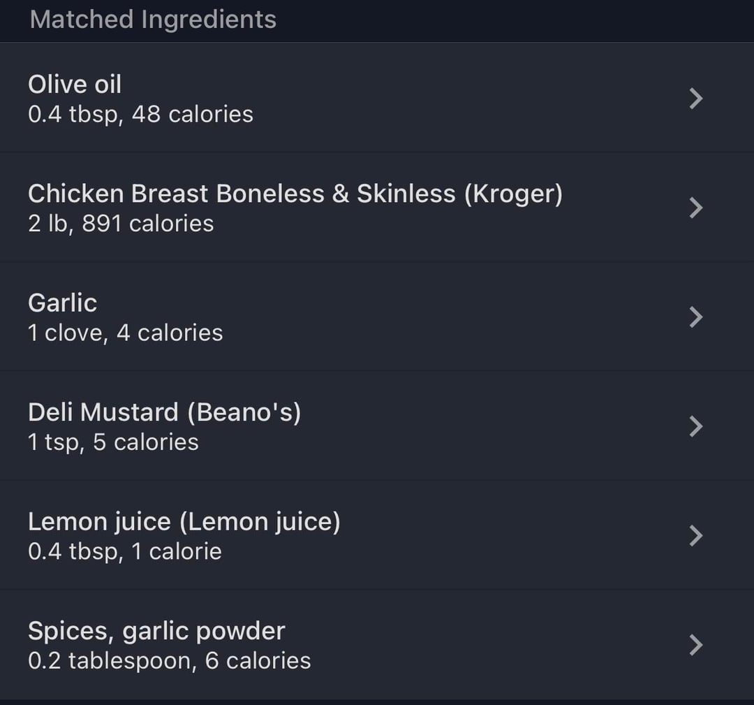 Also, I assumed around 20% absorption for the chicken marinade, which seems to be standard.
