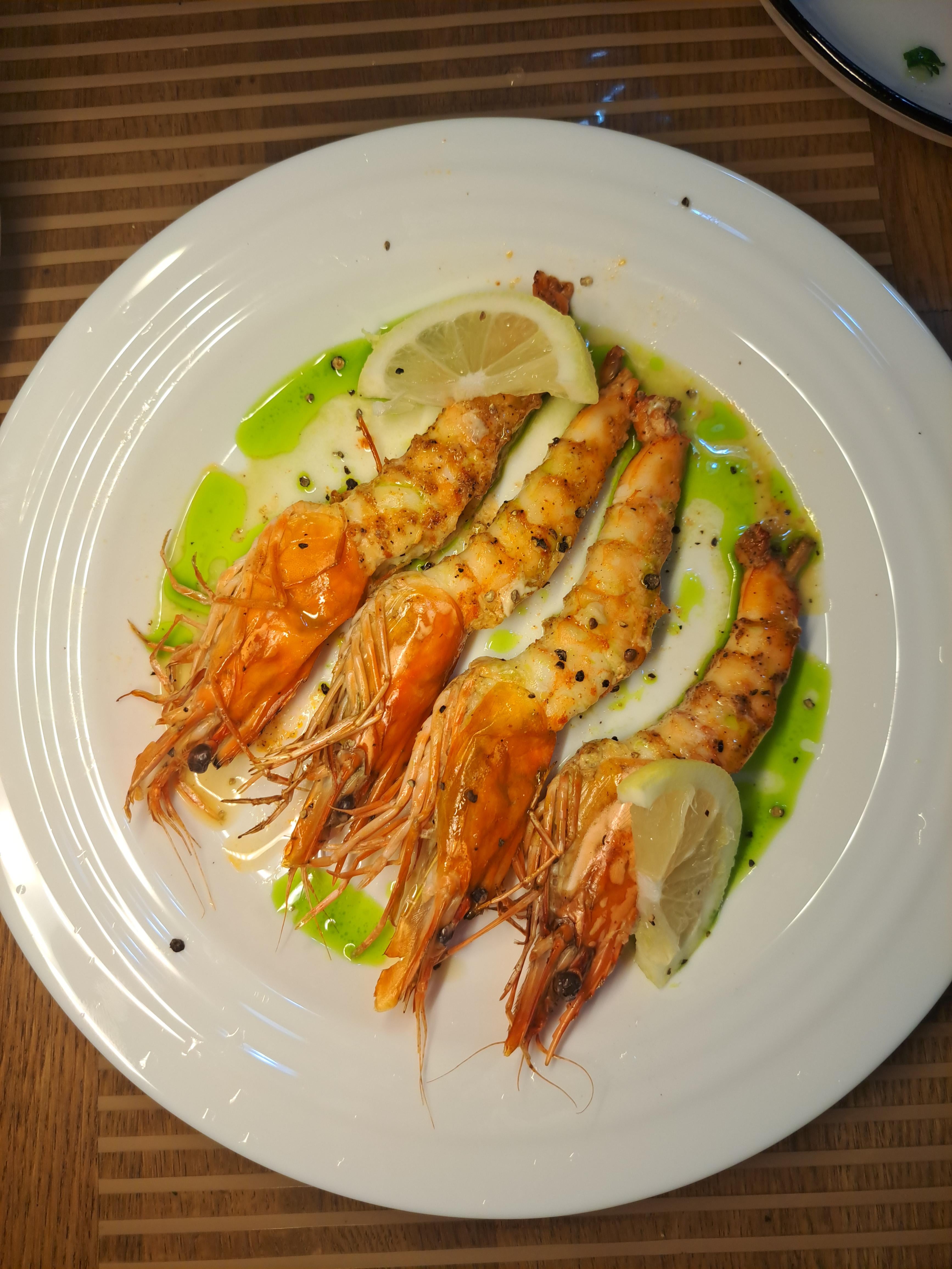 Grilled Tiger prawn with parsley infused oil & coarse black pepper