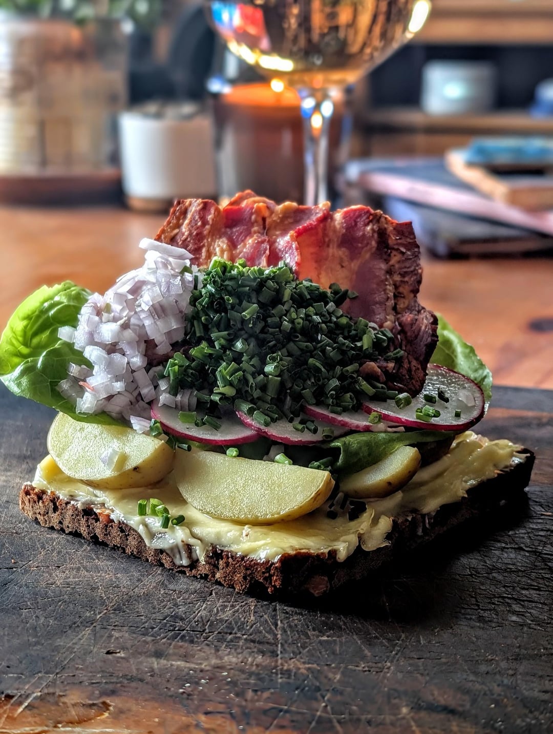 aioli, waxy potato, gem lettuce, bacon, radish, shallot, chive