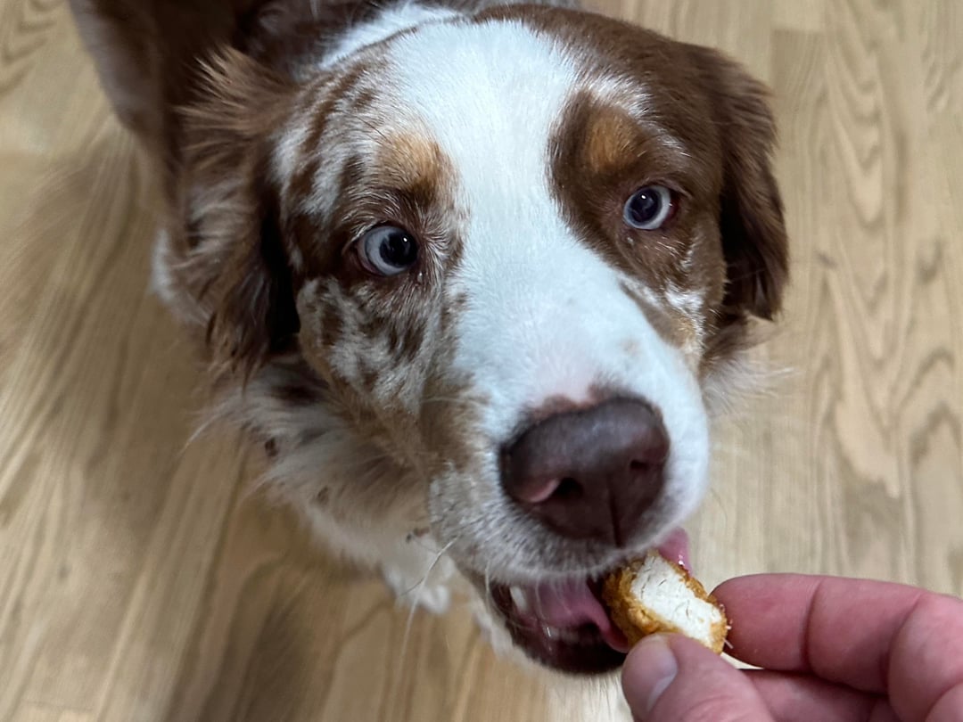 Tasty for humans. I would limit feeding your dog anything spicy. Although most dogs have resilient stomachs they do not do well to salty, spicy or processed foods. Basically anything bad for humans is terrible for them