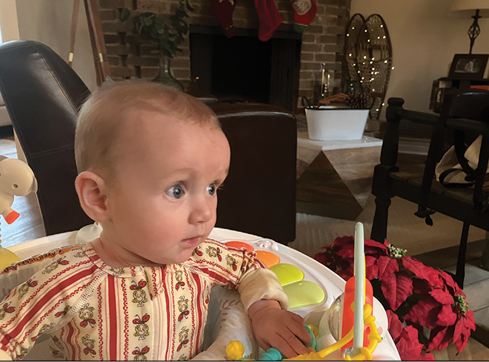 Baby’s first Christmas: “We look at the world once, through childhood.” (photo by Chris Erskine)