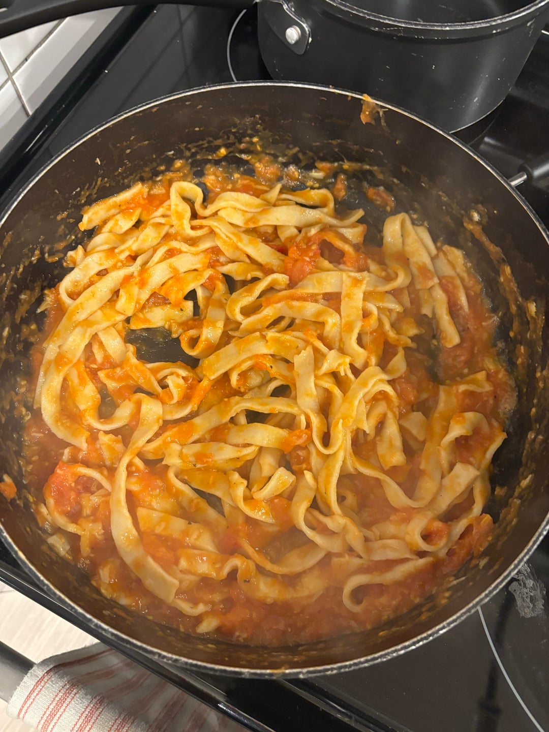 My first attempt at making homemade pasta. Came out a little thick.Made a simple pasta sauce by roasting seasoned tomatoes and garlic in the oven.With some Chianti Classico to accompany the dish I was happy. by SirKeyKnee 1 Comment TiredRundownListless 3 weeks ago Looks beautiful!!